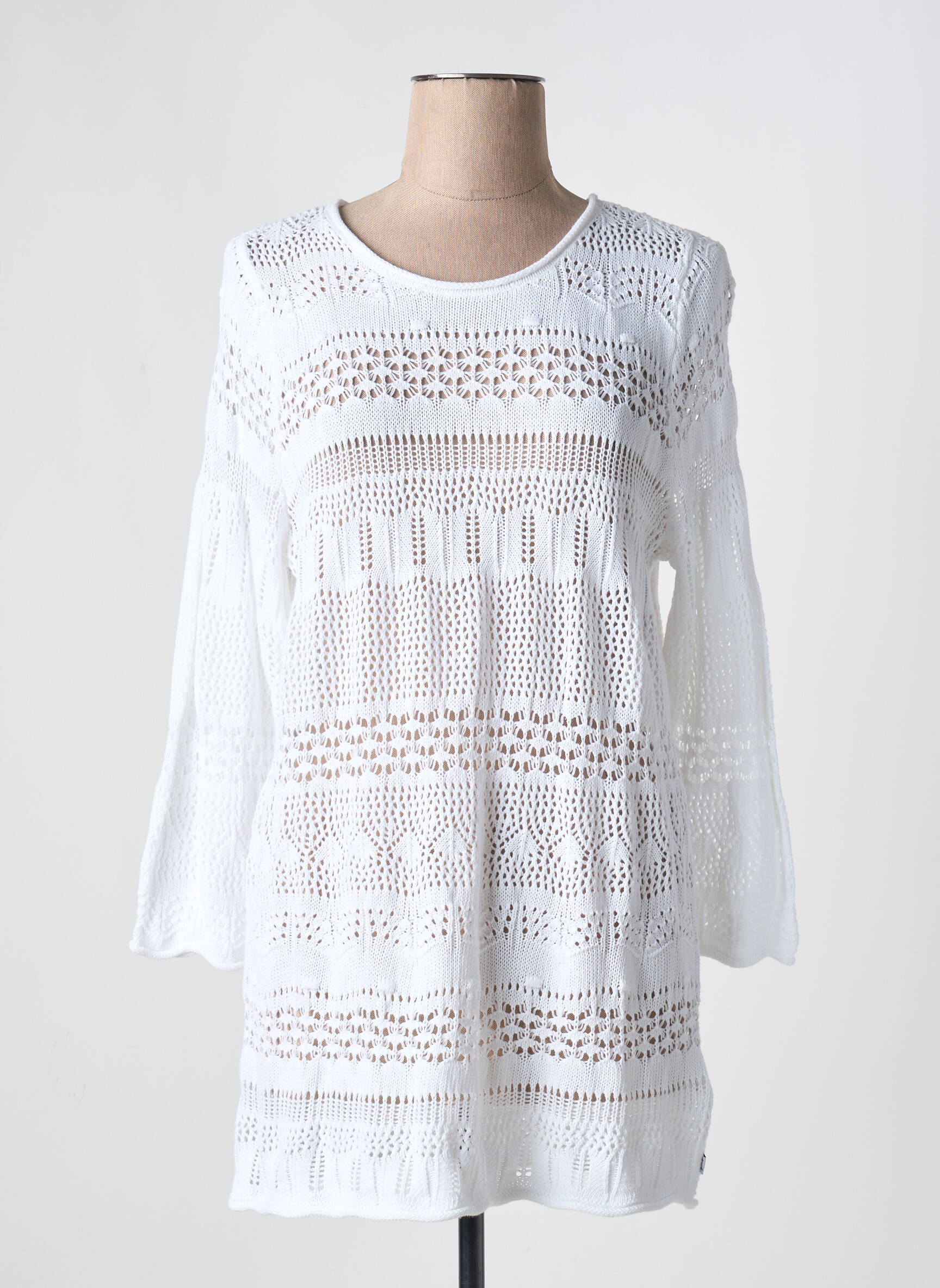 Pulover Tunică Zhenzi Alb Mâneci Lungi