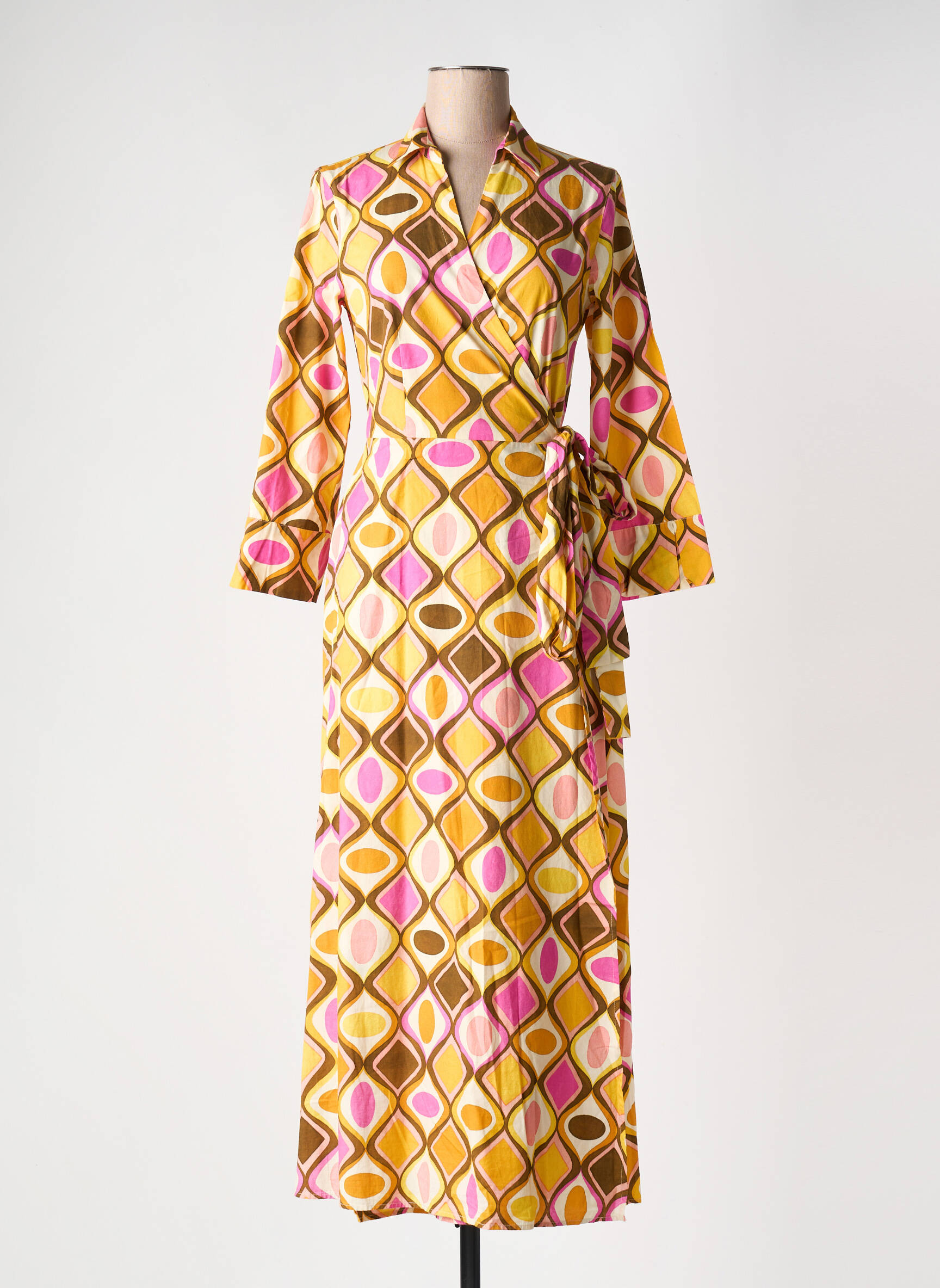 Rochie Lungă 0039 Italy Galben Mâneci Lungi