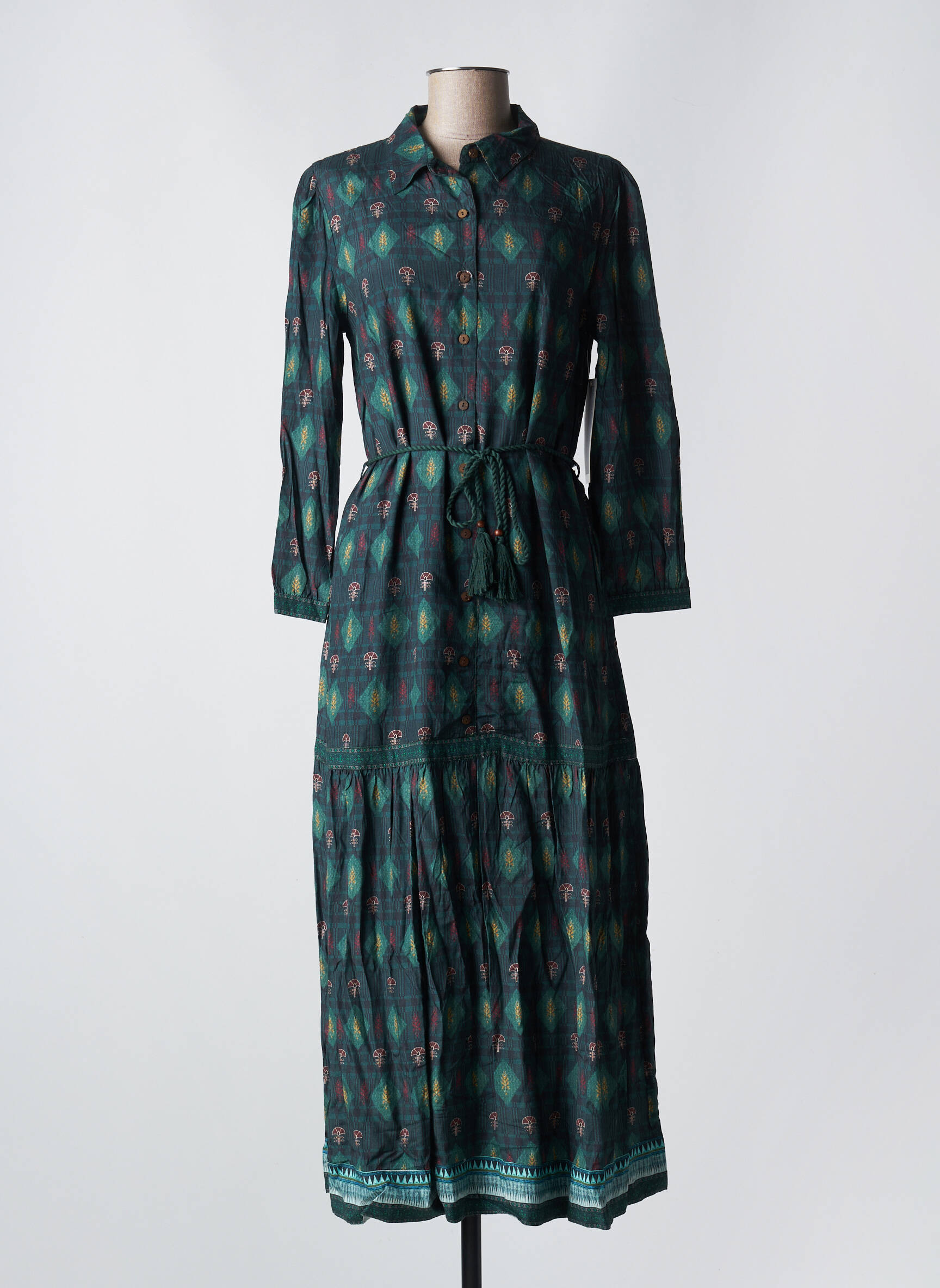 Rochie Lungă Agathe & Louise Verde Mâneci Lungi