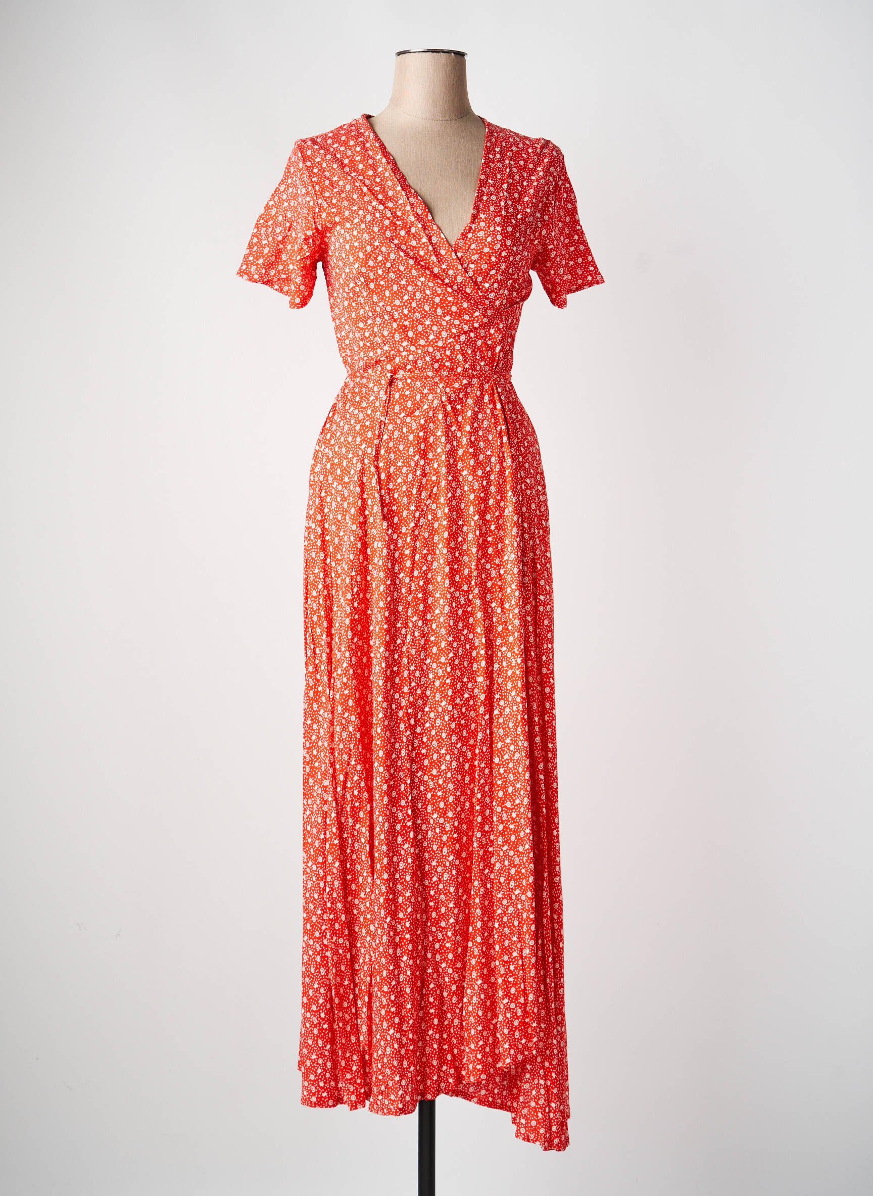 Rochie Lungă Aller Simplement Portocaliu Mâneci Scurte
