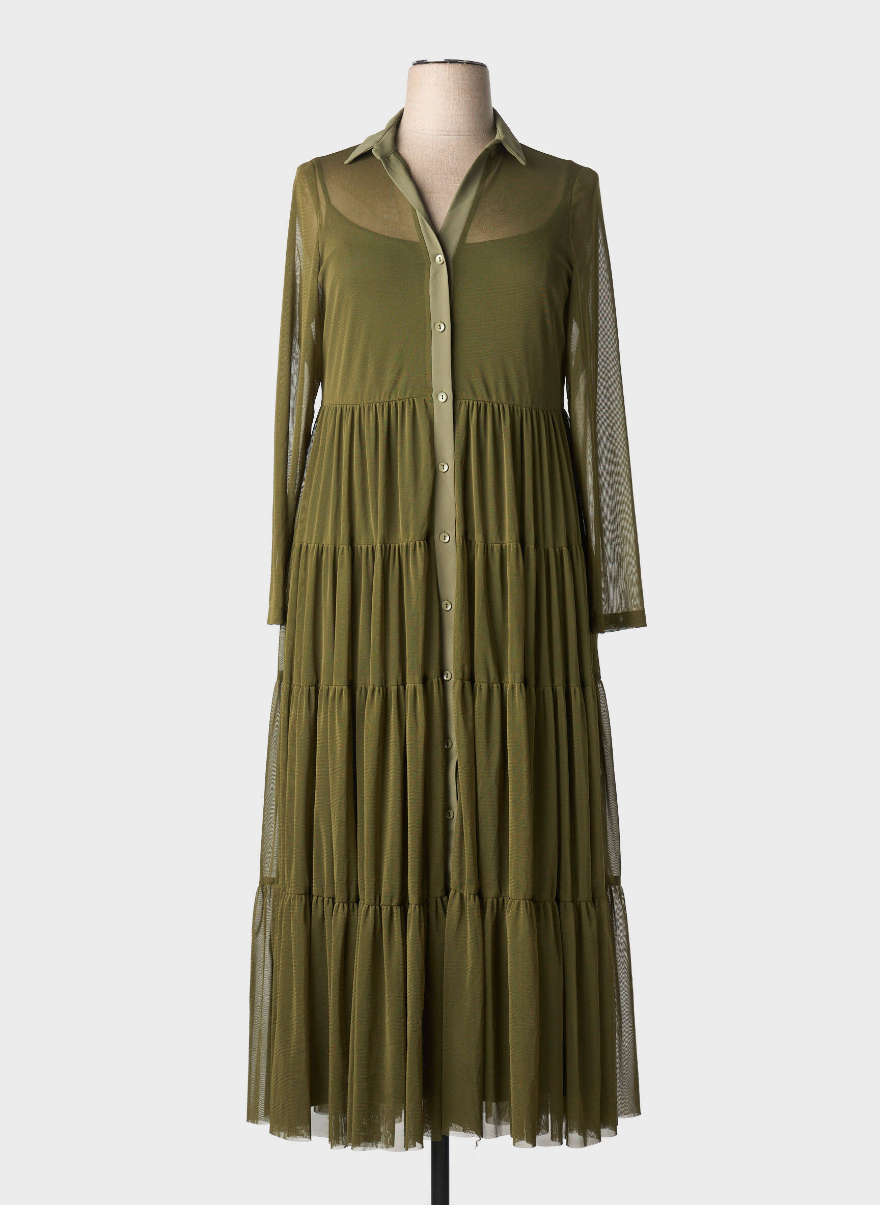 Rochie Lungă An-vito Verde Mâneci Lungi