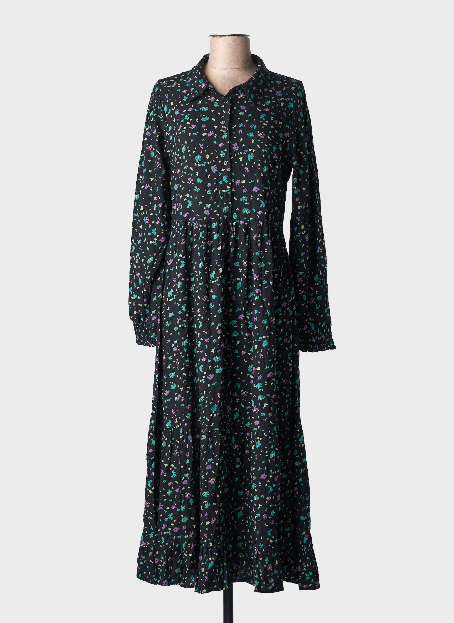 Rochie Lungă Ange Negru Mâneci Lungi