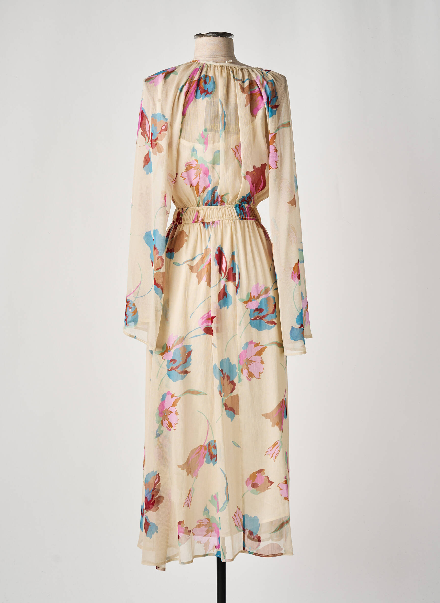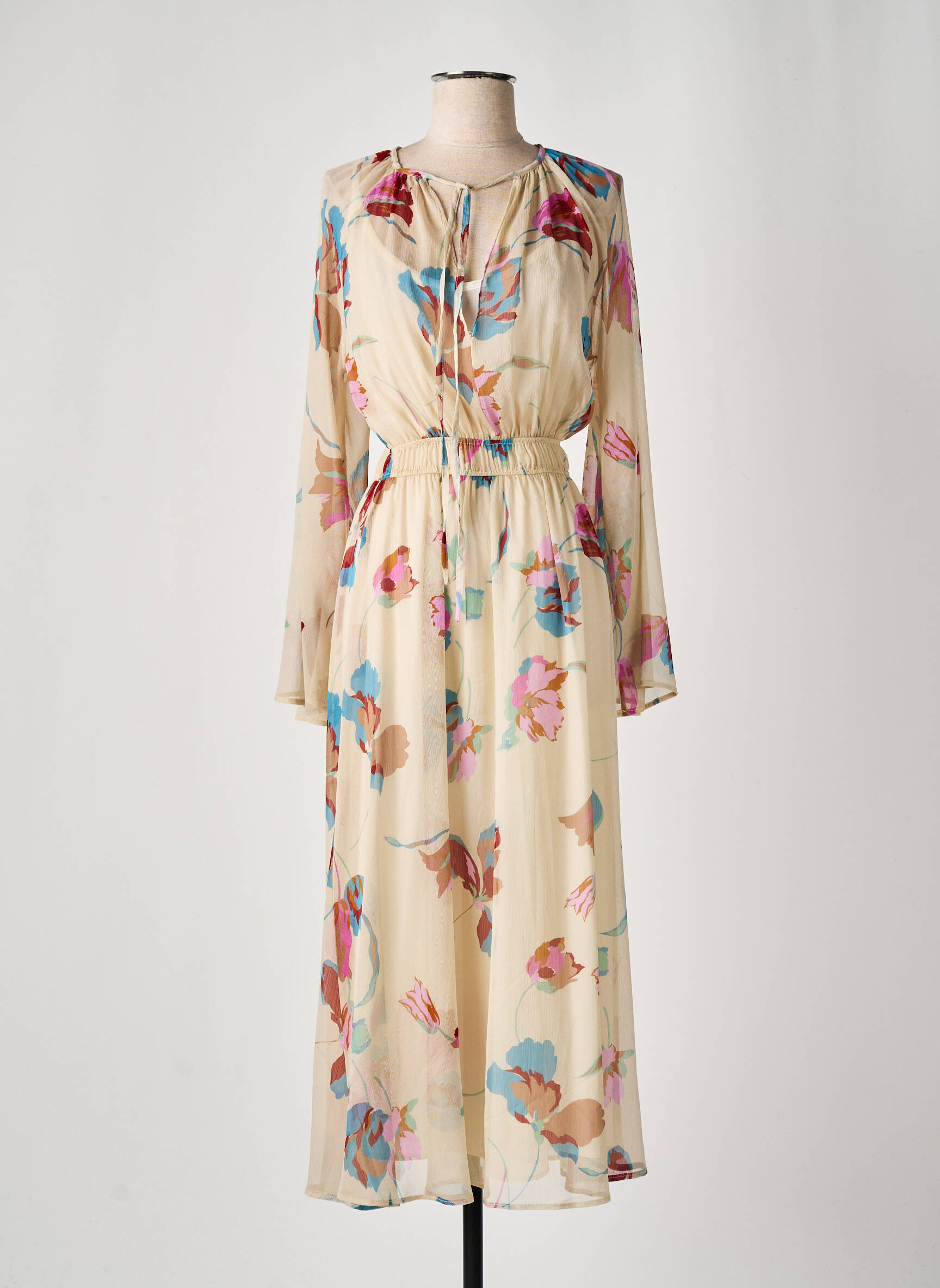 Rochie Lungă Angela Davis Bej Mâneci Lungi