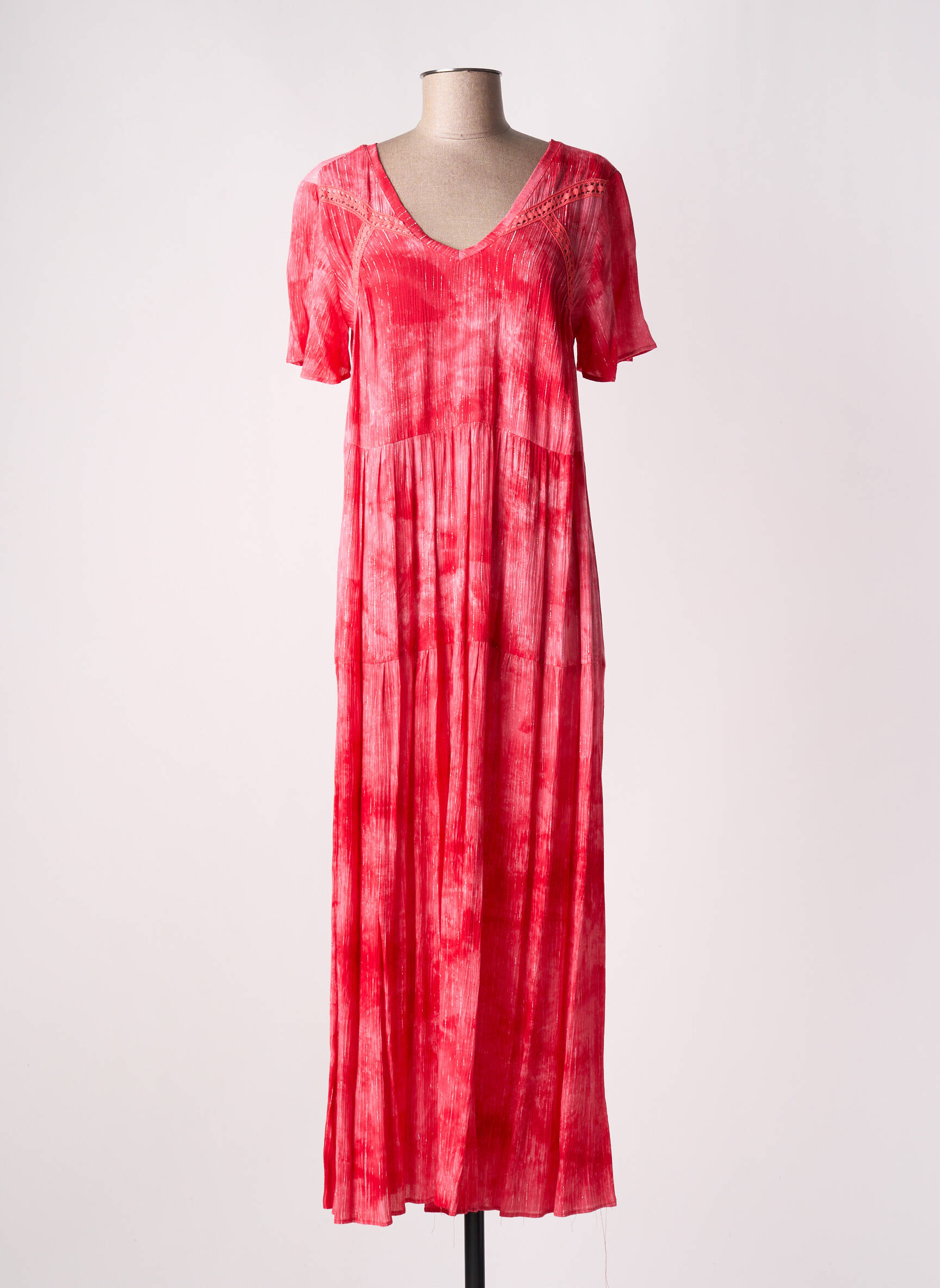 Rochie Lungă Atelier Jad Roz Mâneci Scurte