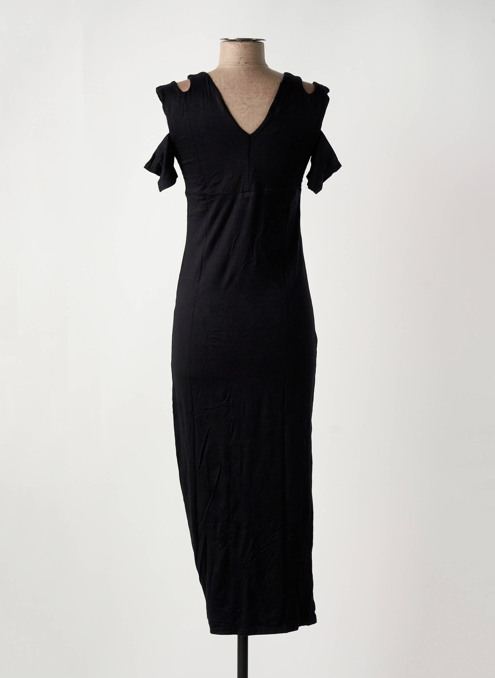 Rochie Lungă Bamboo's Negru Mâneci Scurte