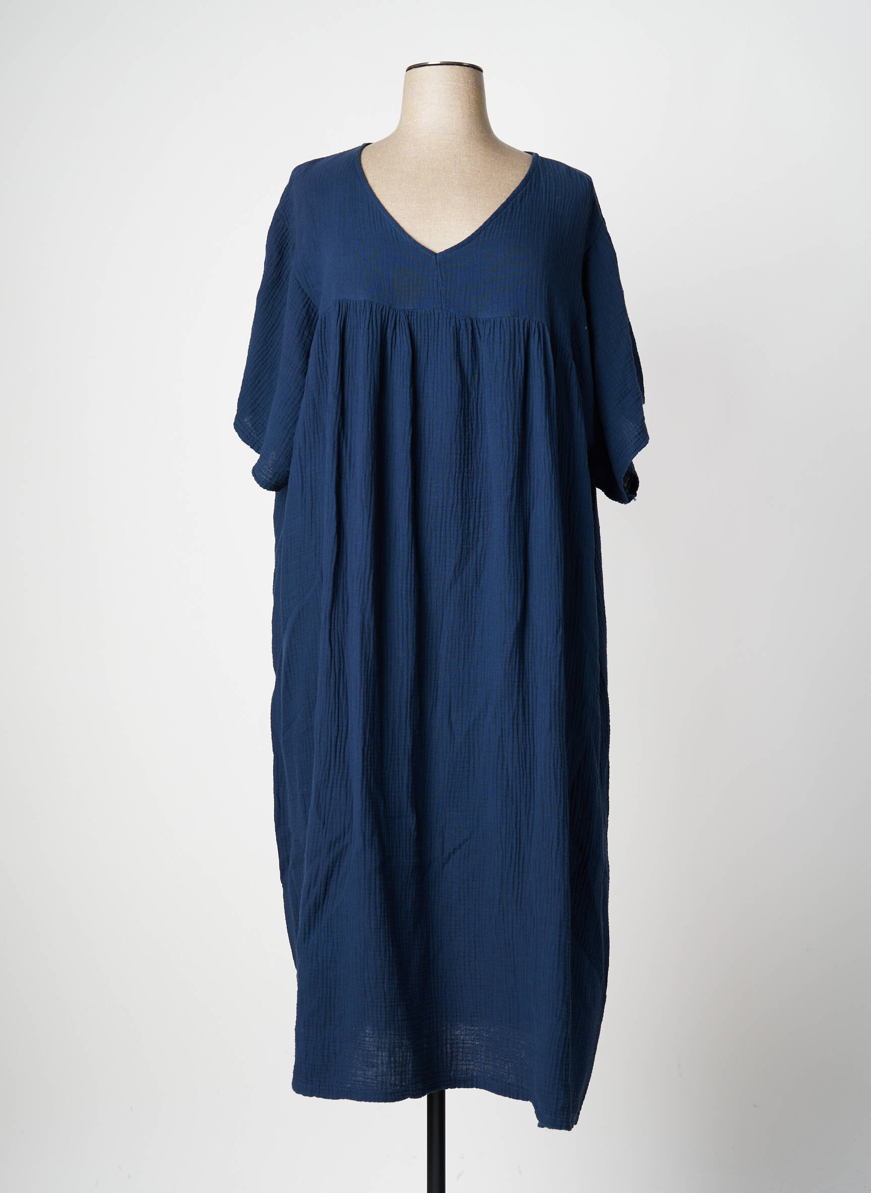 Rochie Lungă Bellove Albastru Mâneci Scurte