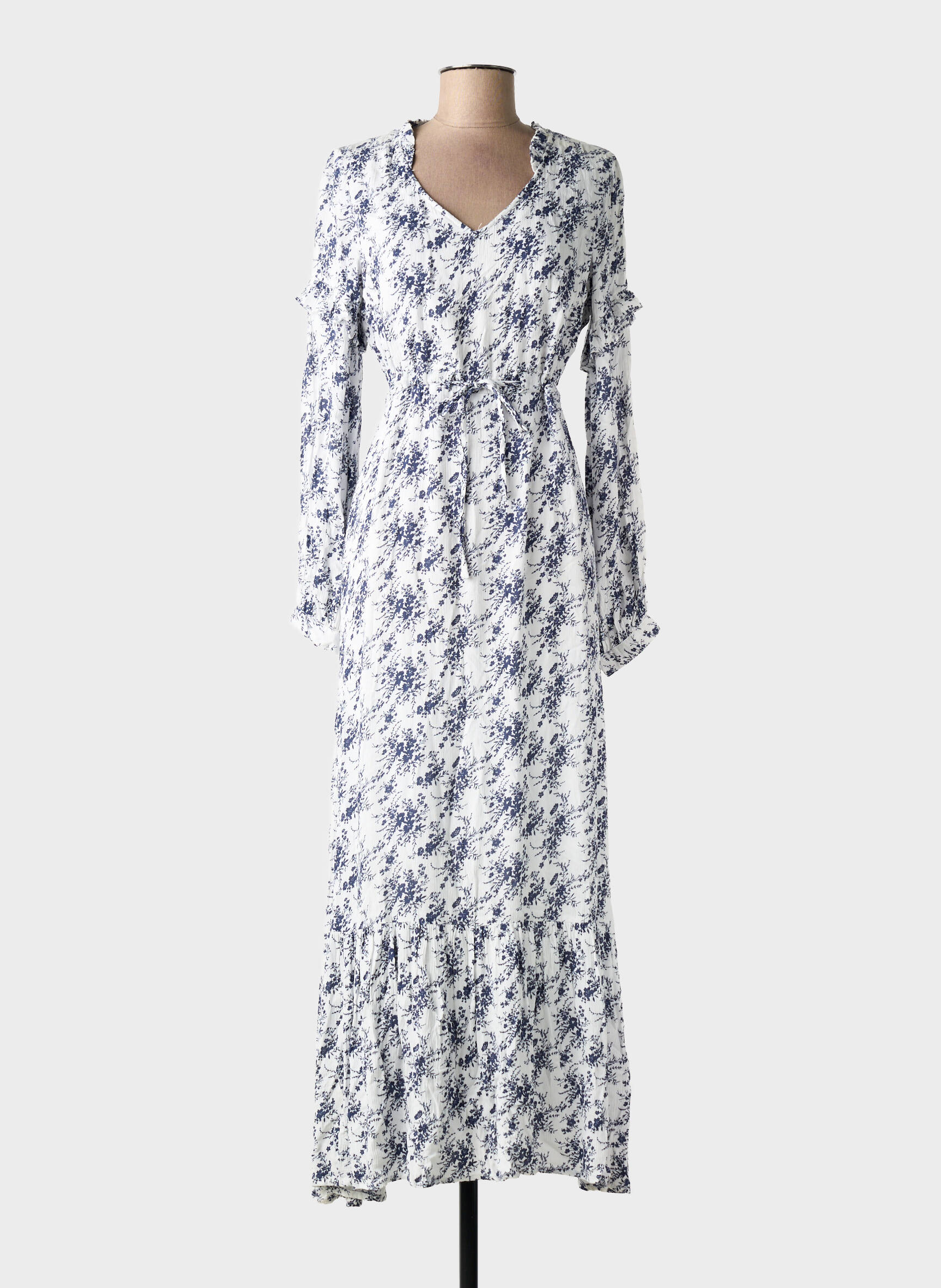 Rochie Lungă C'est Beau La Vie Alb Mâneci Lungi