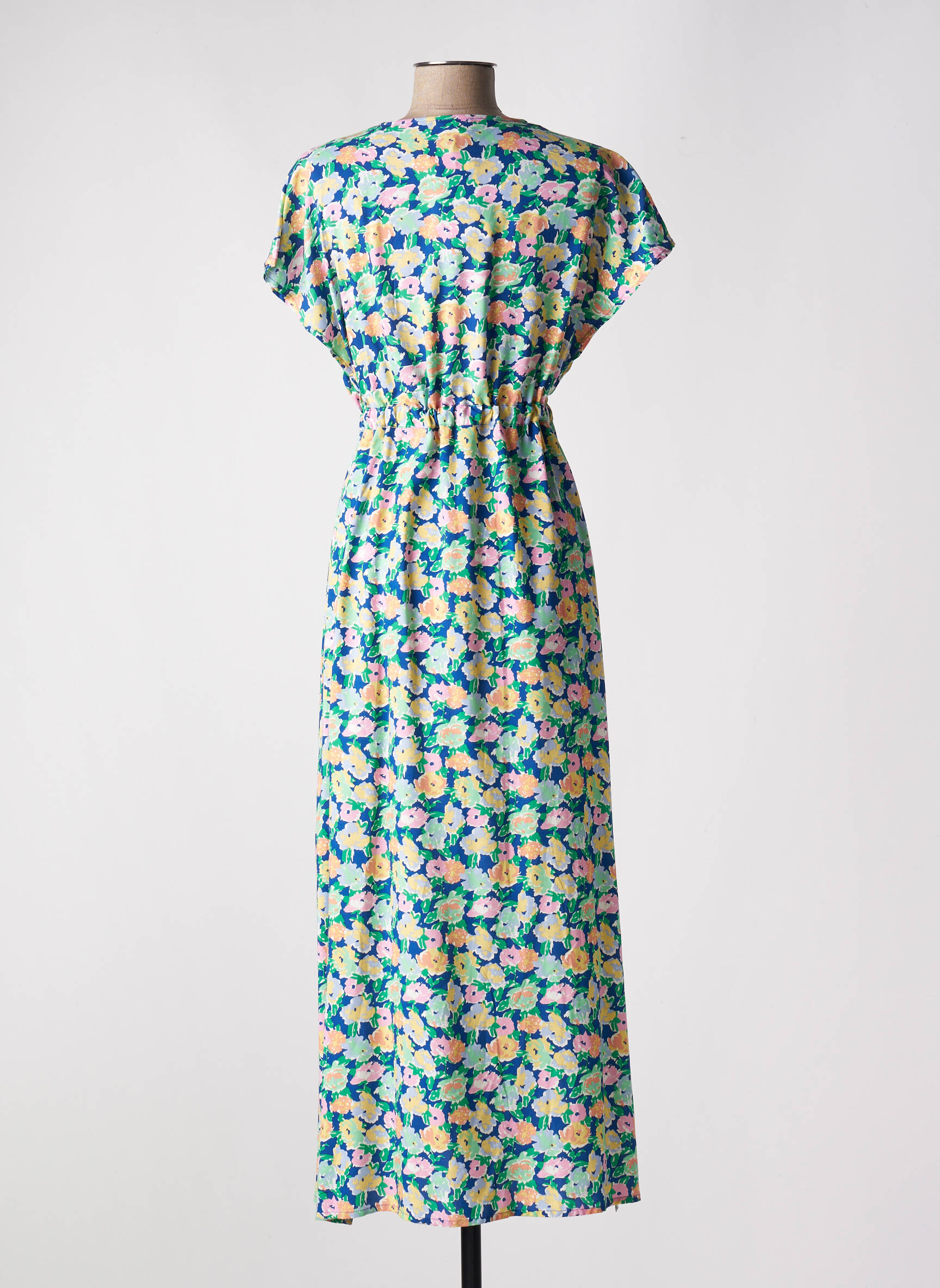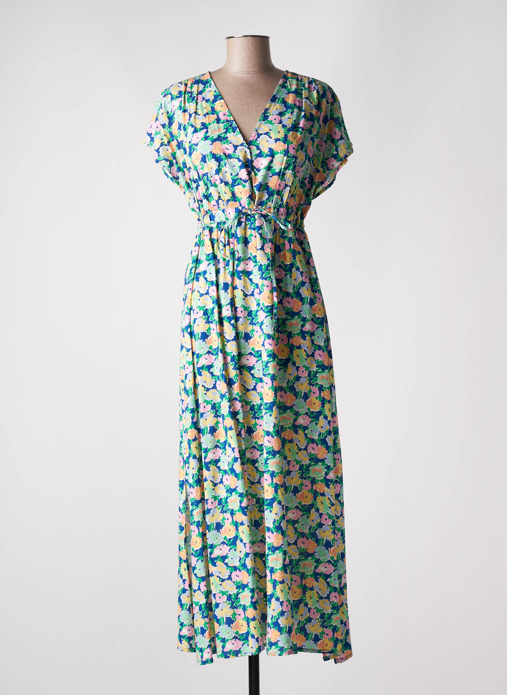 Rochie Lungă C'est Beau La Vie Albastru Mâneci Scurte