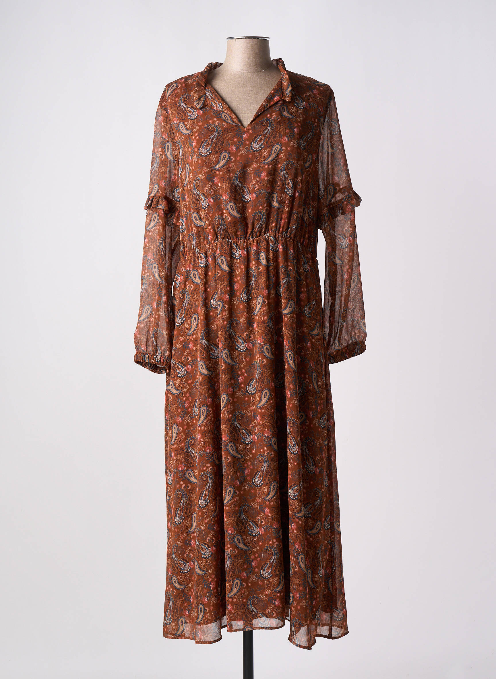 Rochie Lungă C'est Beau La Vie Maro Mâneci Lungi