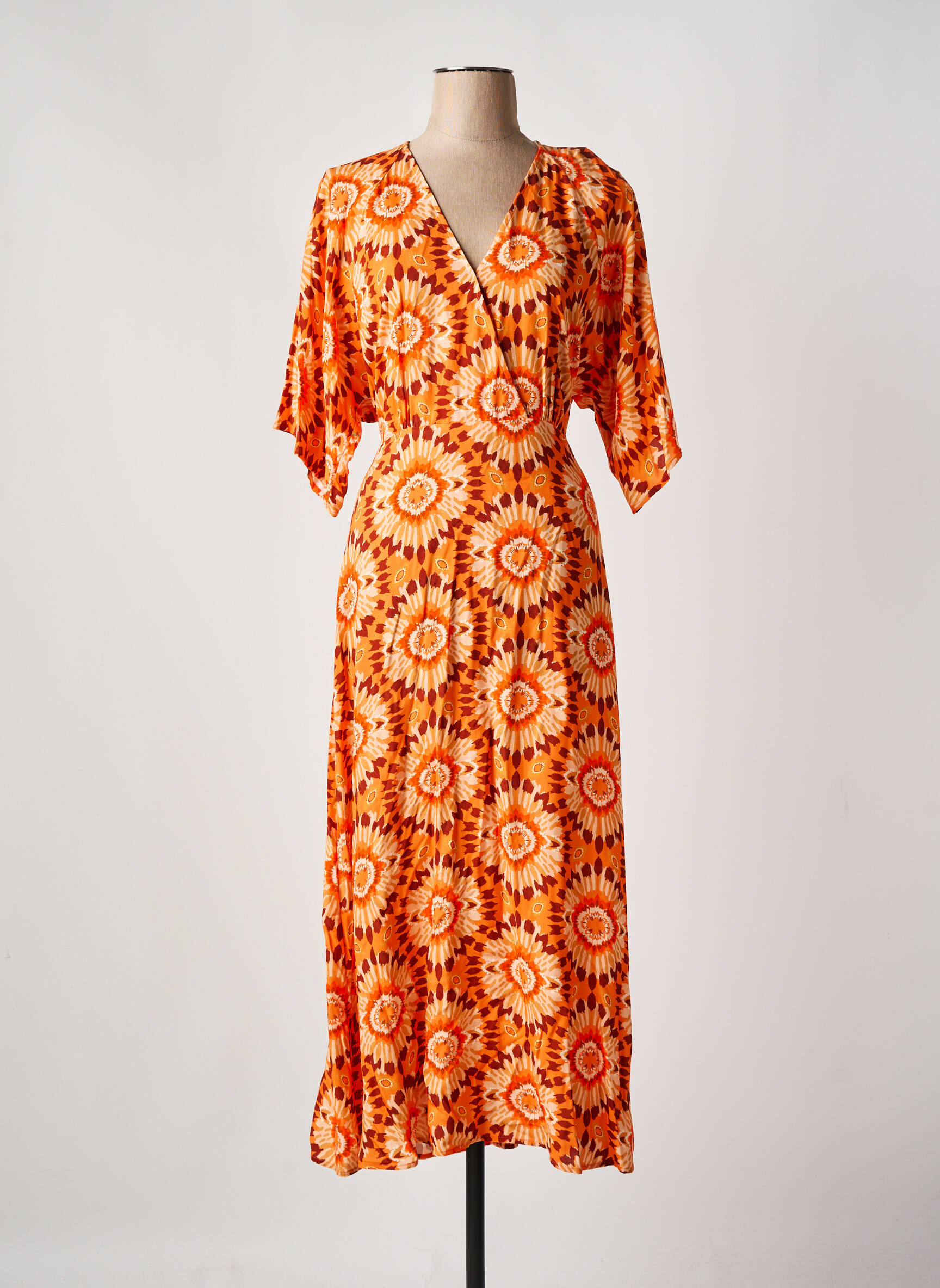 Rochie Lungă C'est Beau La Vie Portocaliu Mâneci Scurte