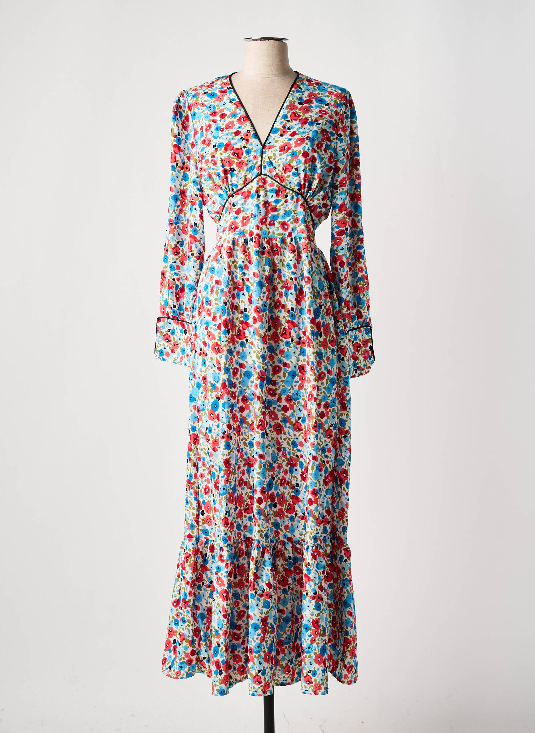 Rochie Lungă C'flo Albastru Mâneci Lungi