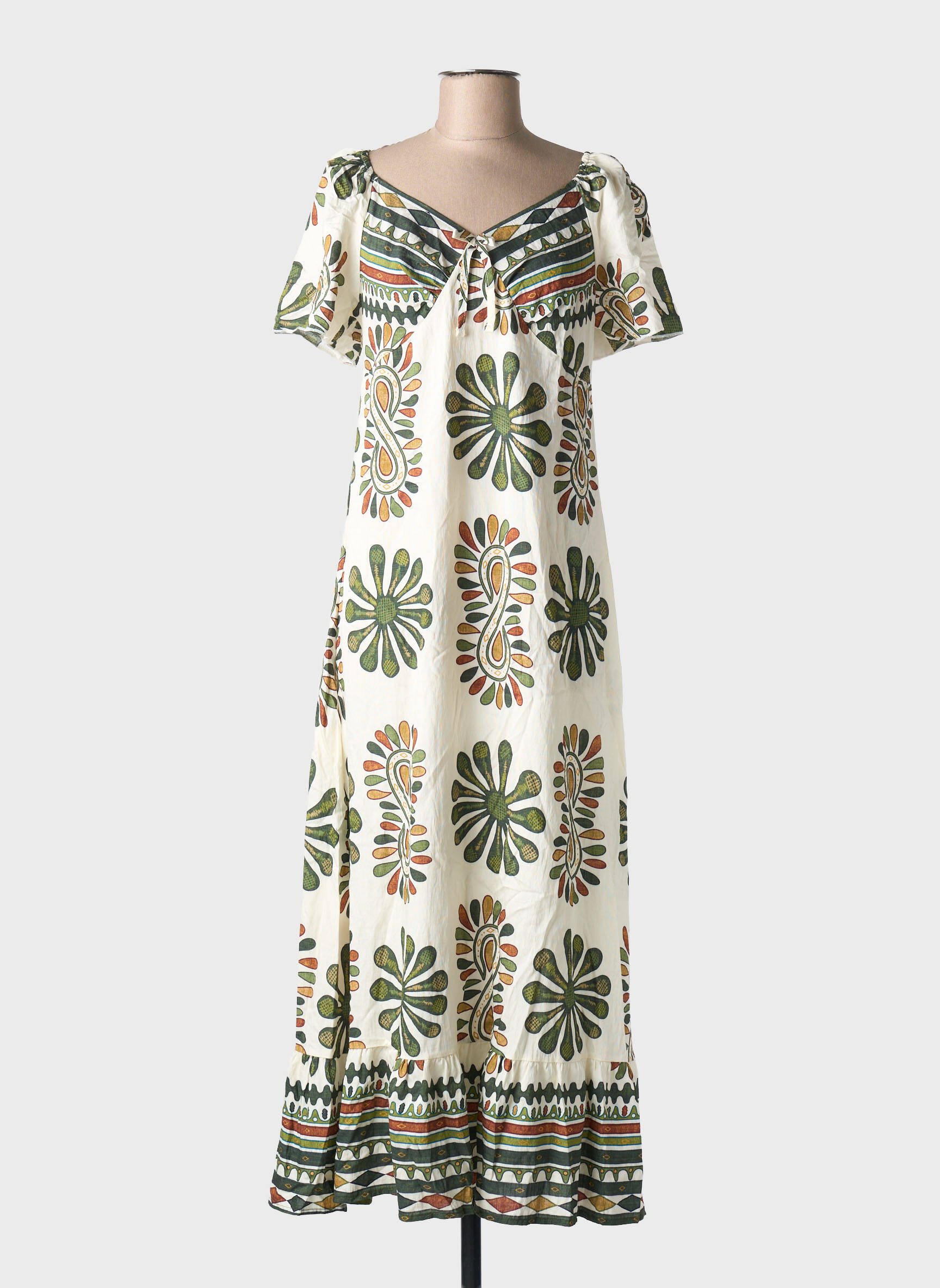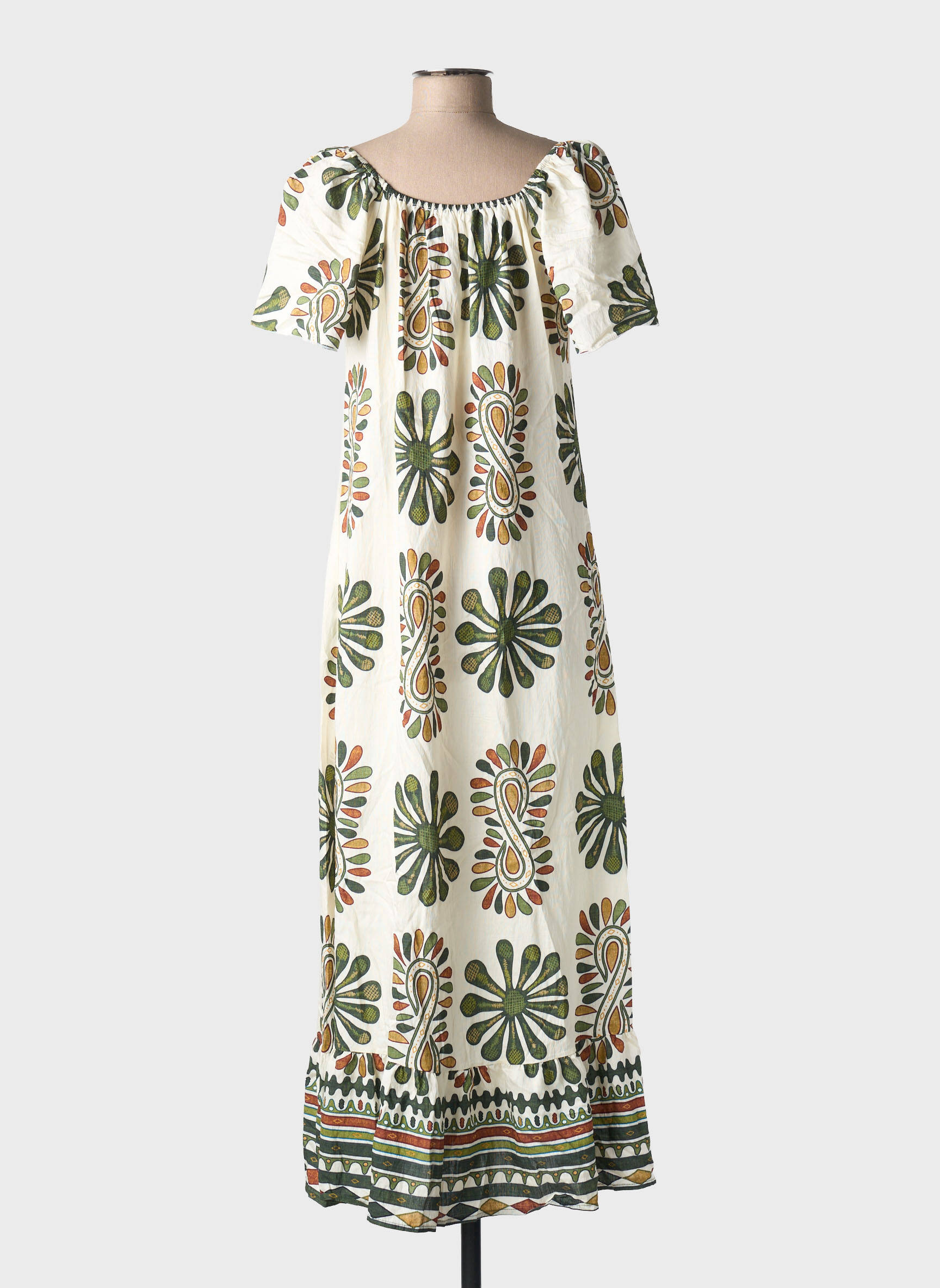 Rochie Lungă C'flo Verde Mâneci Scurte