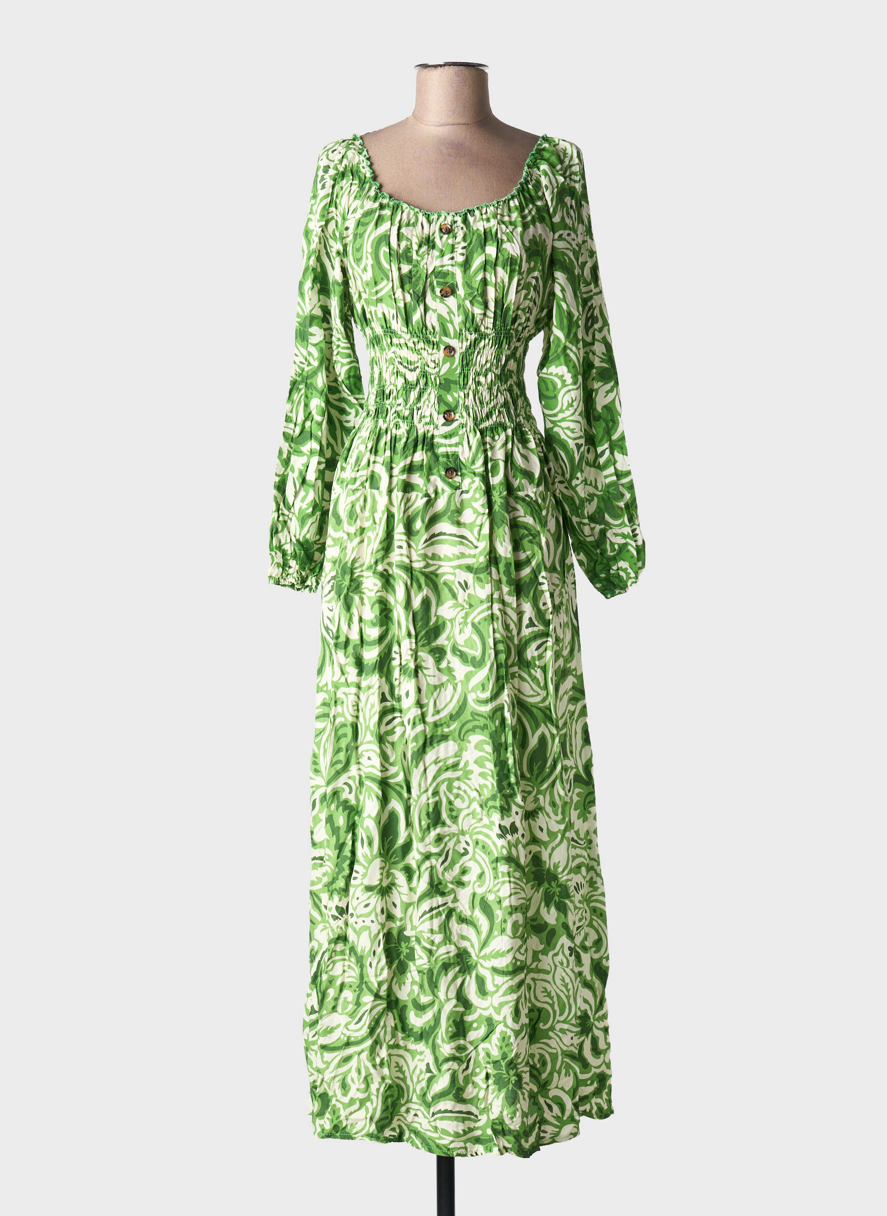 Rochie Lungă C'flo Verde Mâneci Lungi