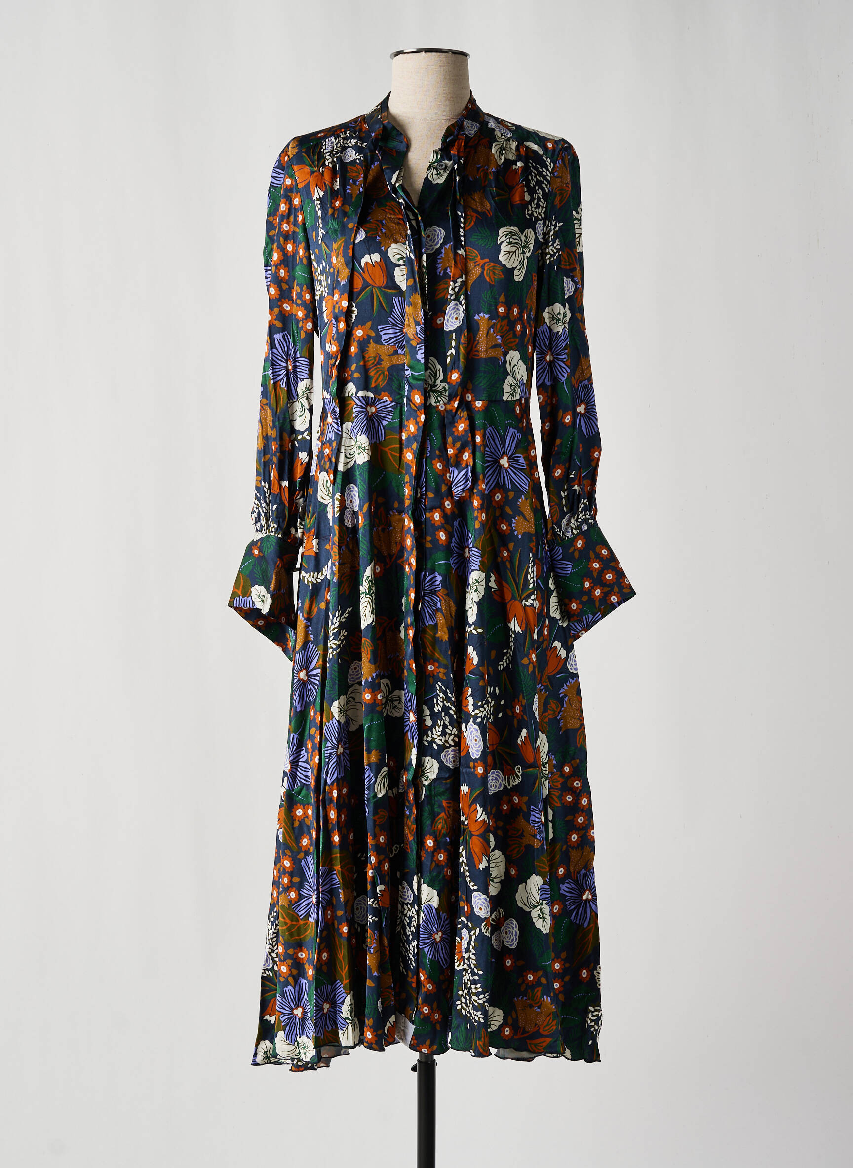 Rochie Lungă Caliban Albastru Mâneci Lungi