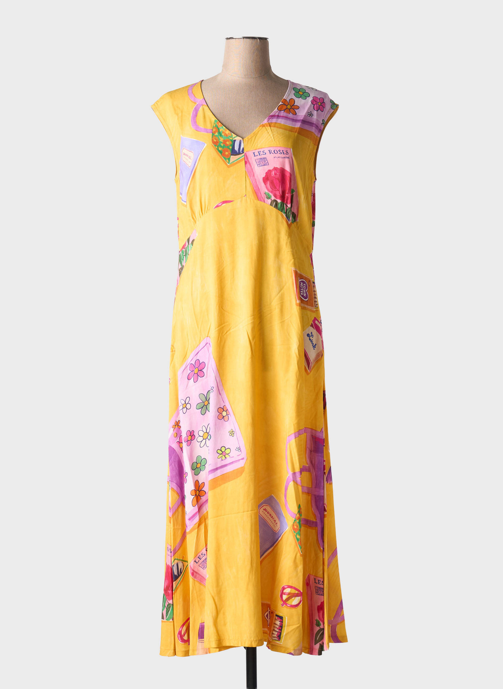 Rochie Lungă Cap Juluca Galben Mâneci Scurte