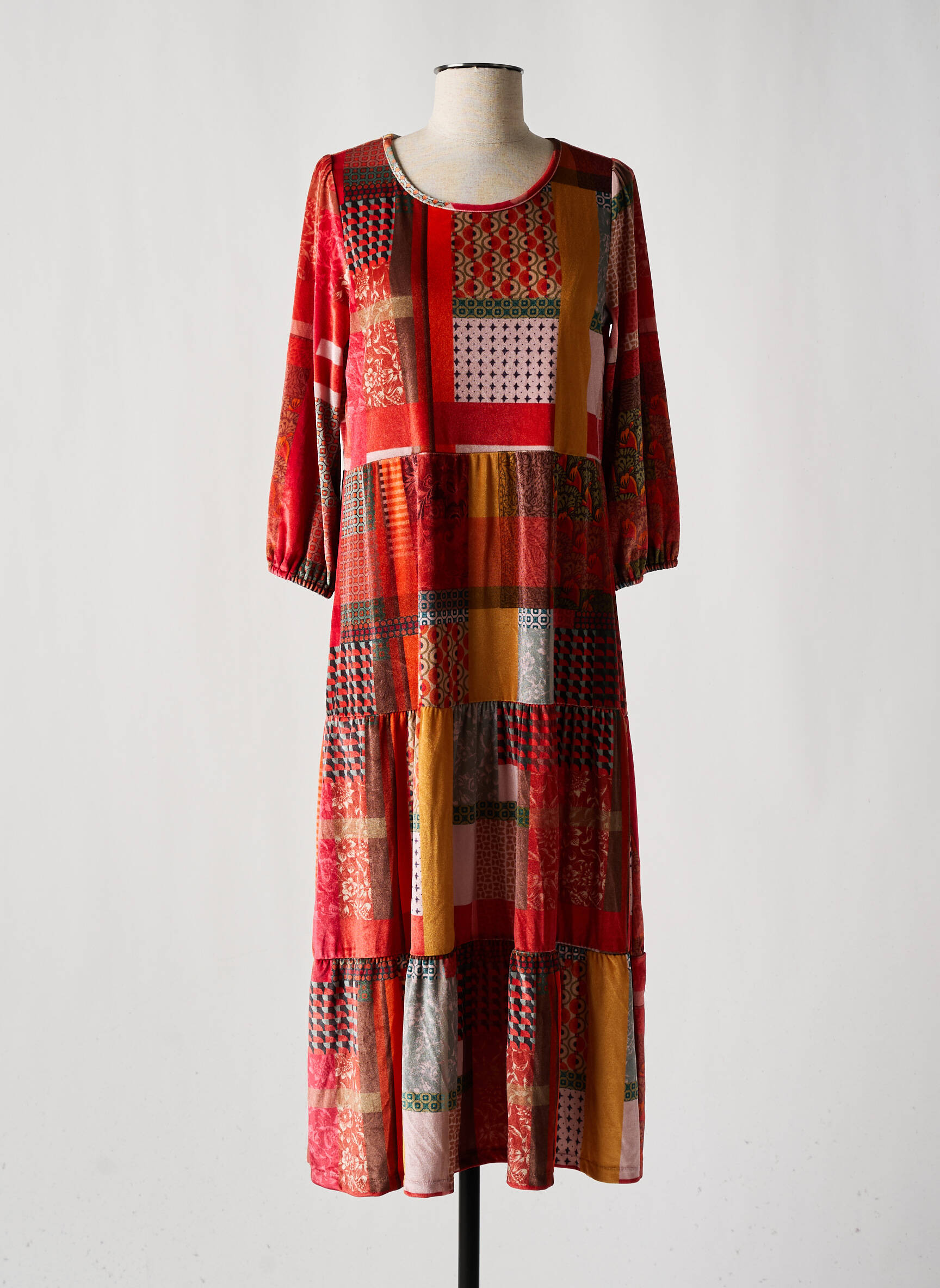 Rochie Lungă Cap Juluca Portocaliu Mâneci Lungi