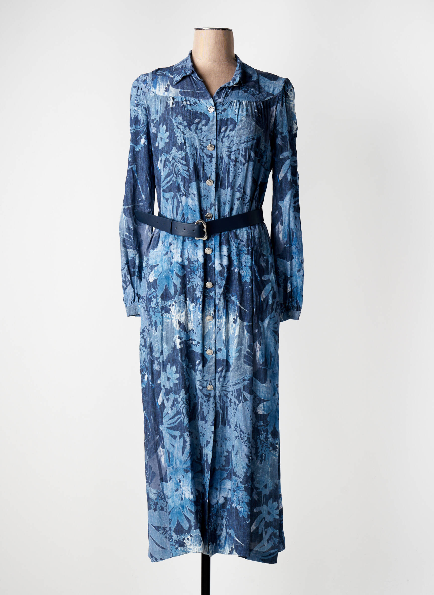 Rochie Lungă Caroline Biss Albastru Mâneci Lungi