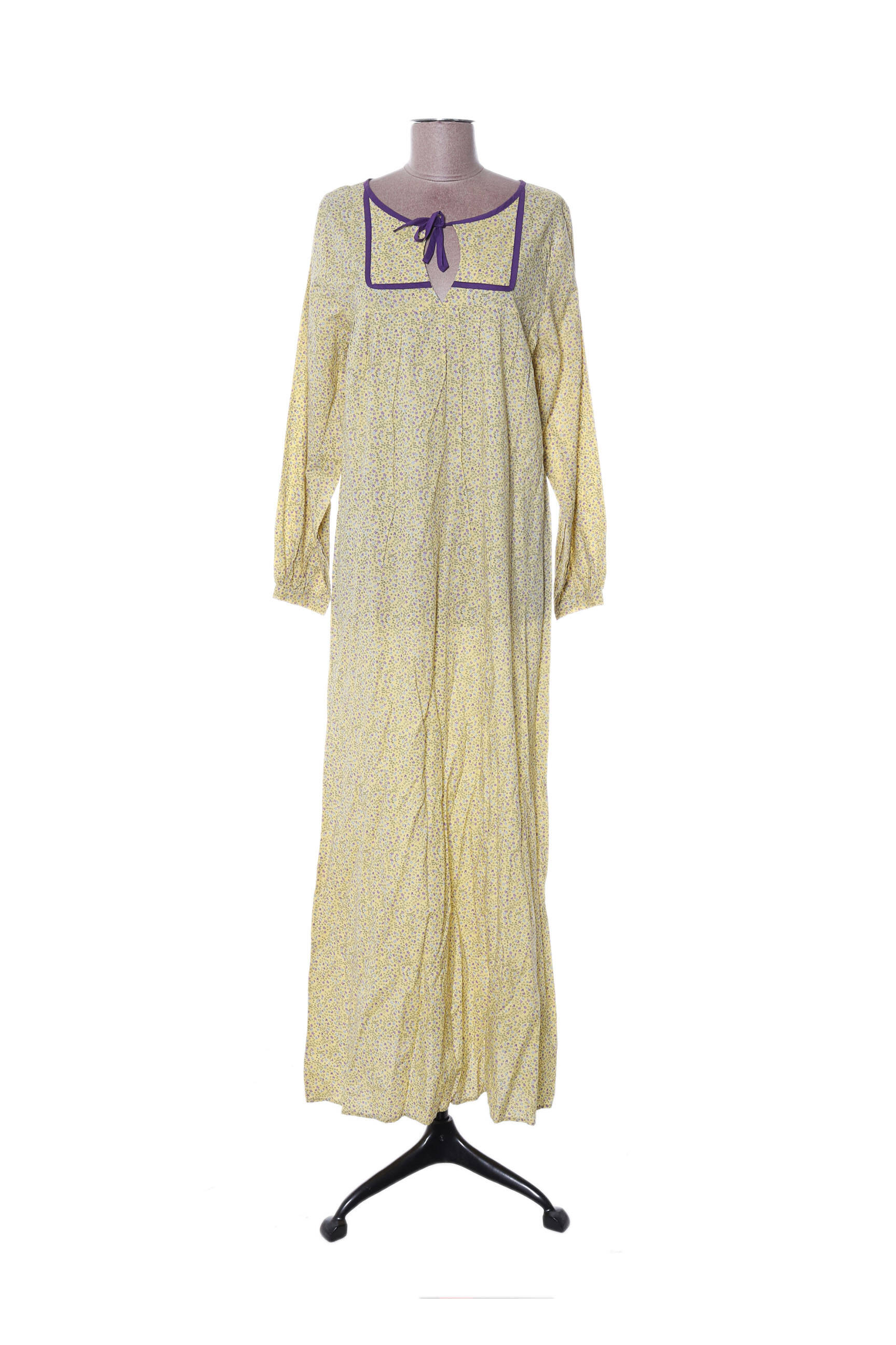Rochie Lungă Ch.ind. Galben Mâneci Lungi