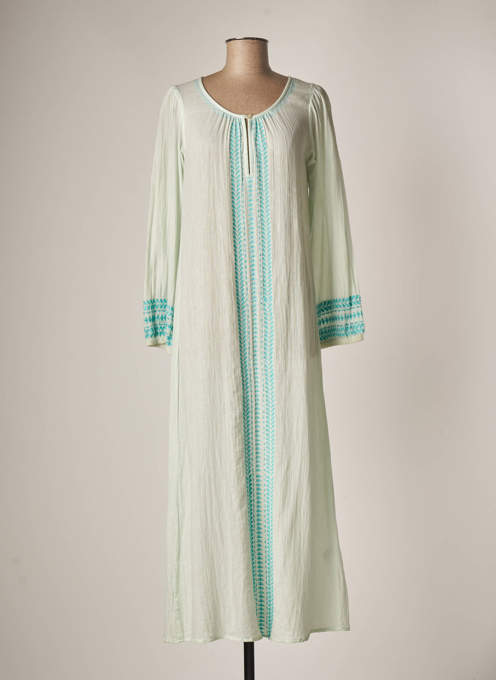 Rochie Lungă Christophe Sauvat Albastru Mâneci Lungi