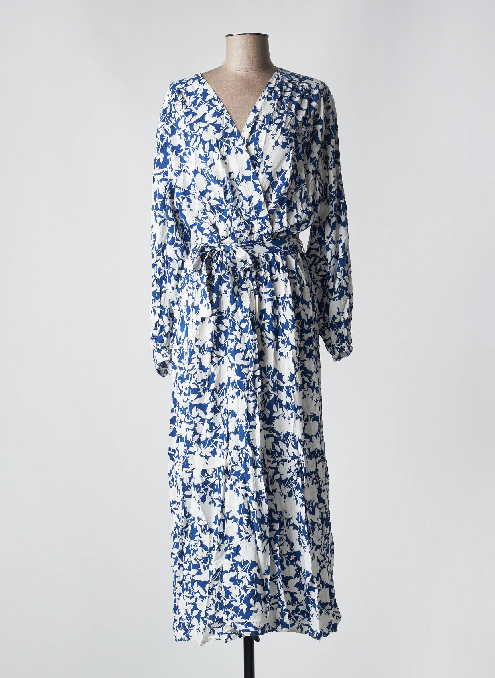 Rochie Lungă Christy Albastru Mâneci Lungi