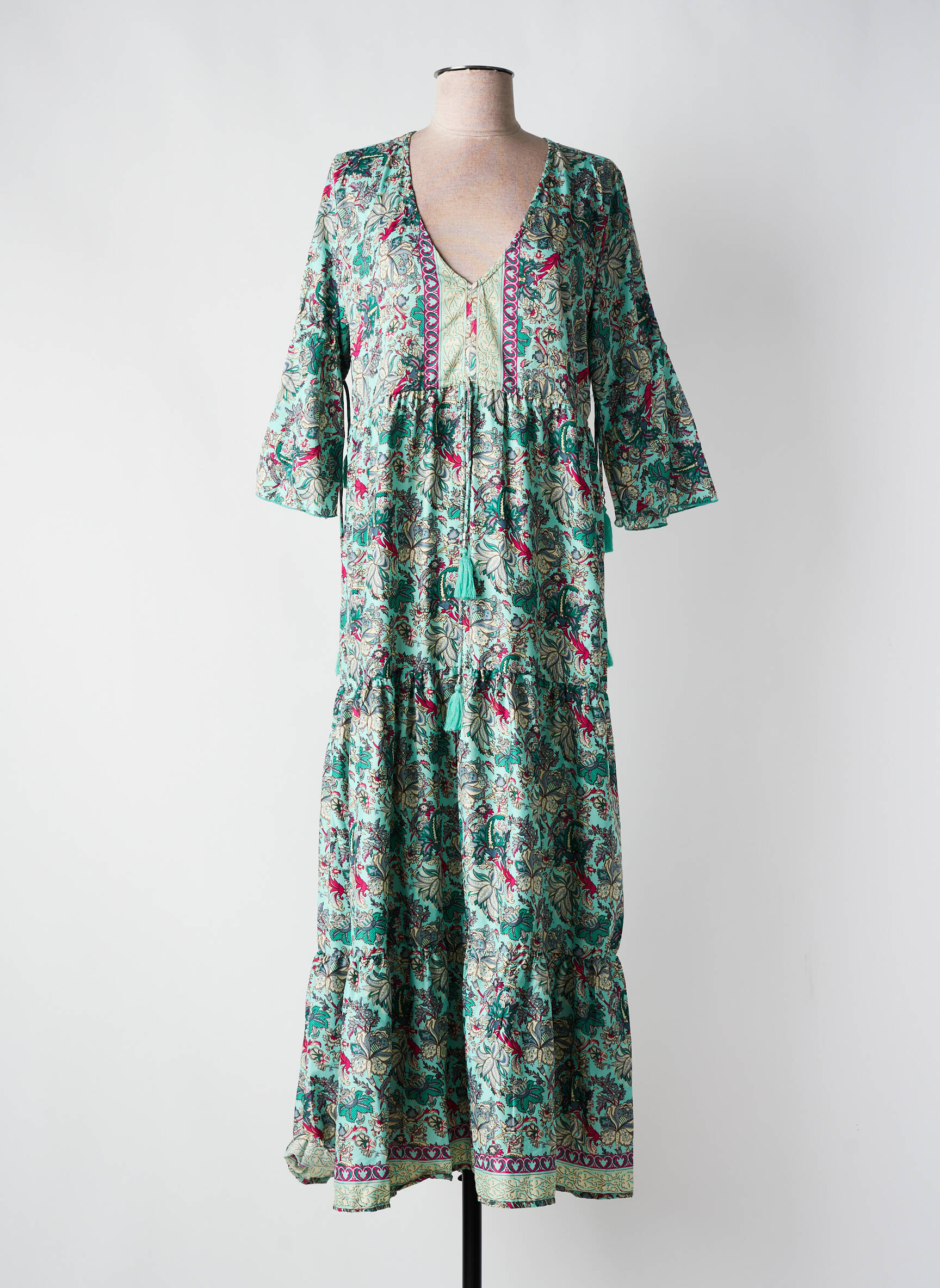 Rochie Lungă Coline Verde Mâneci 3/4