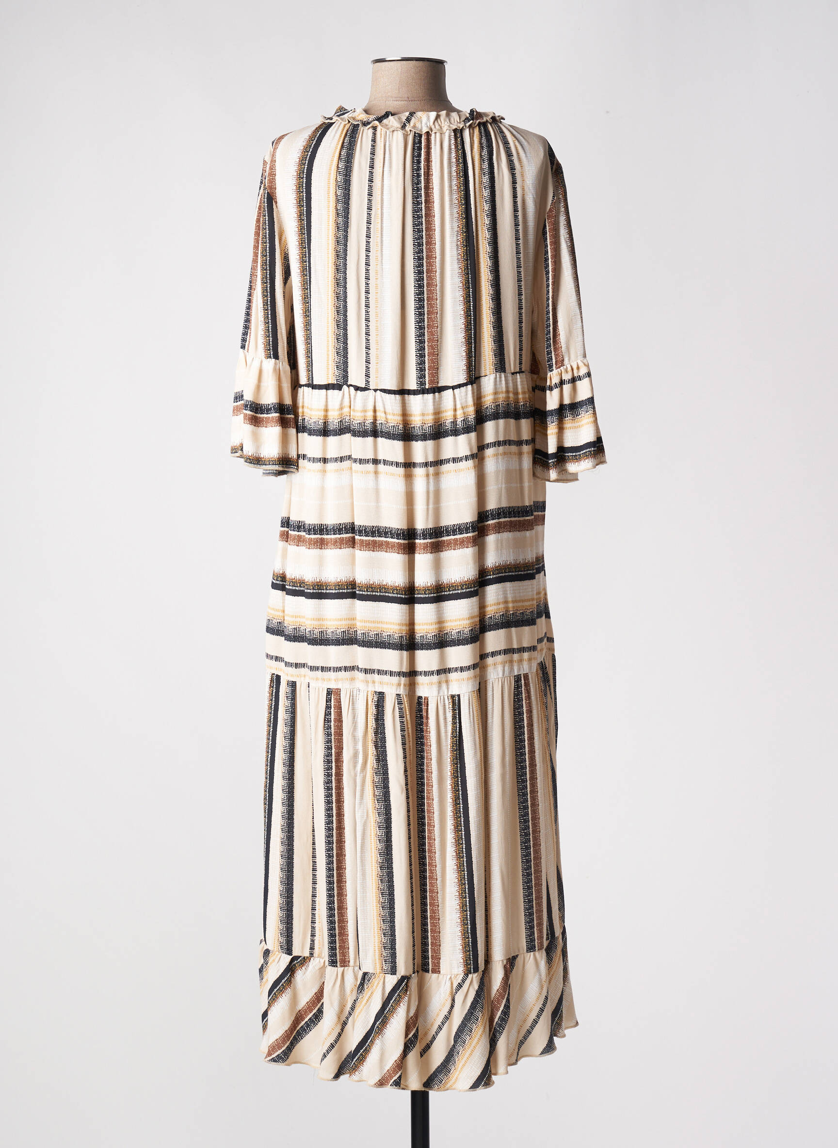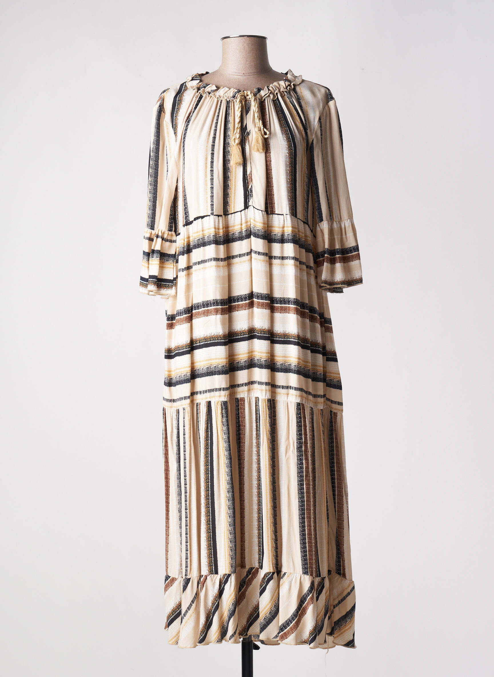 Rochie Lungă Costa 8 Mani Bej Mâneci 3/4