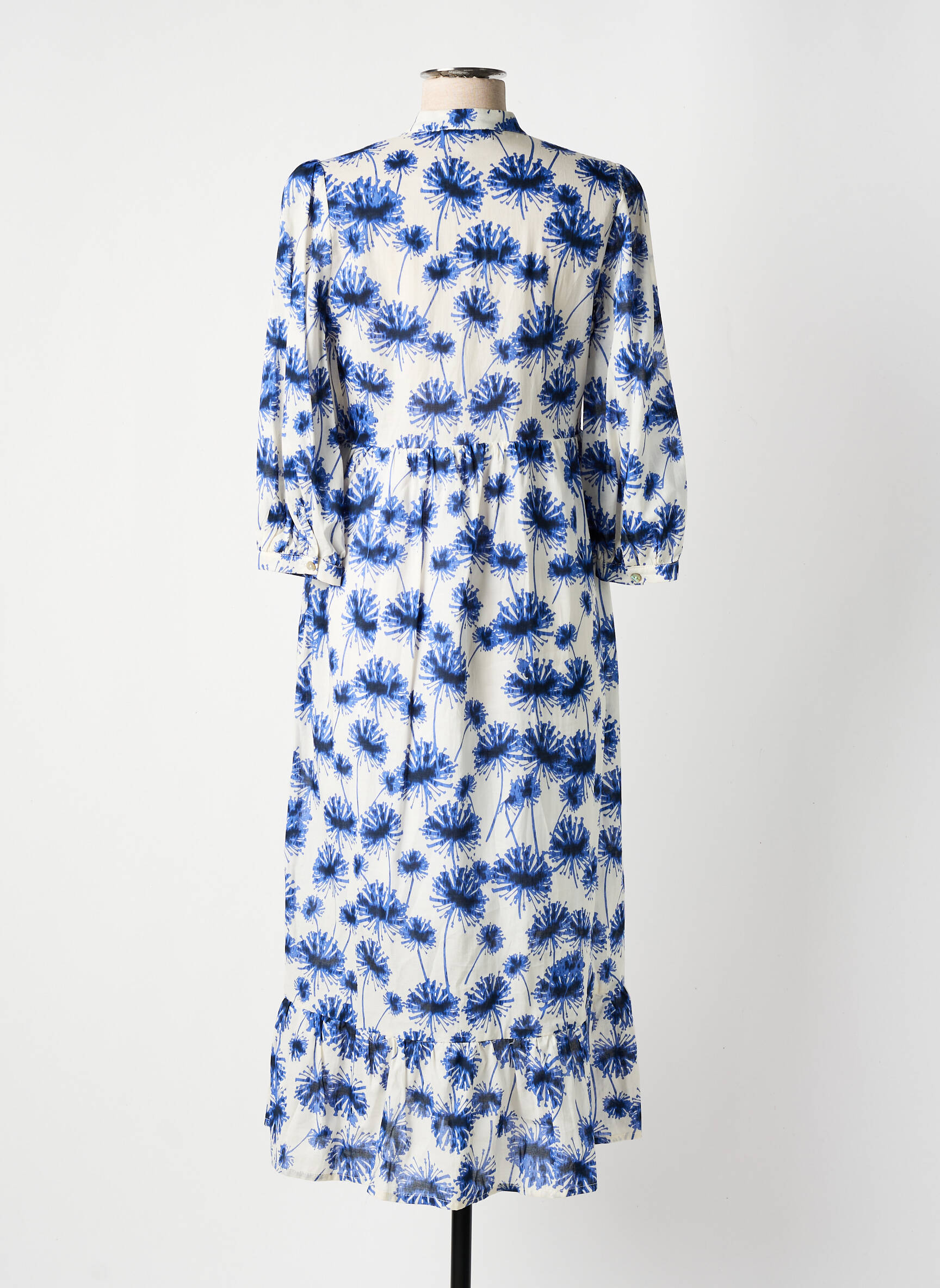 Rochie Lungă Cottonade Albastru Mâneci 3/4