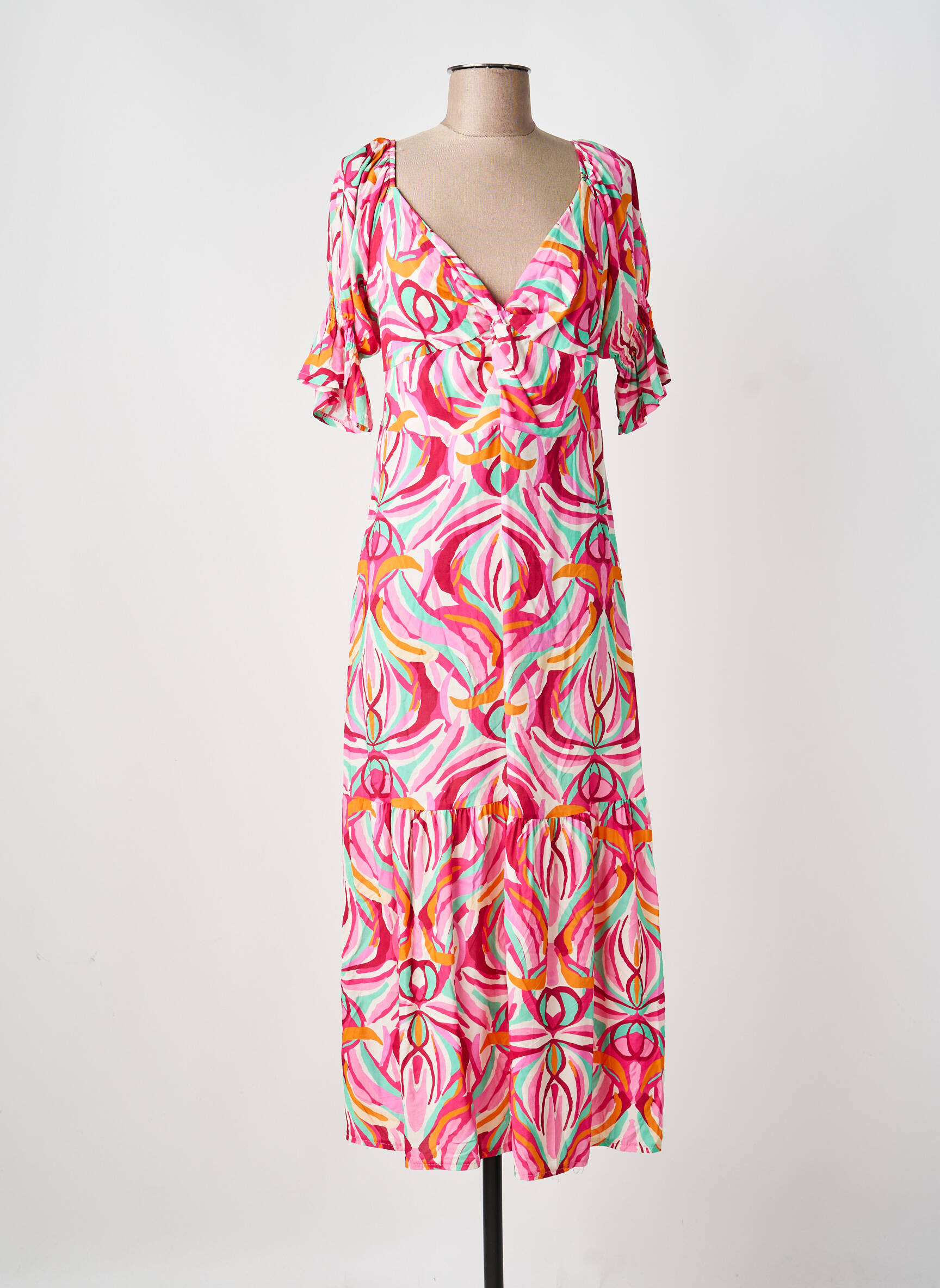Rochie Lungă Couleurs Du Temps Roz Mâneci Scurte