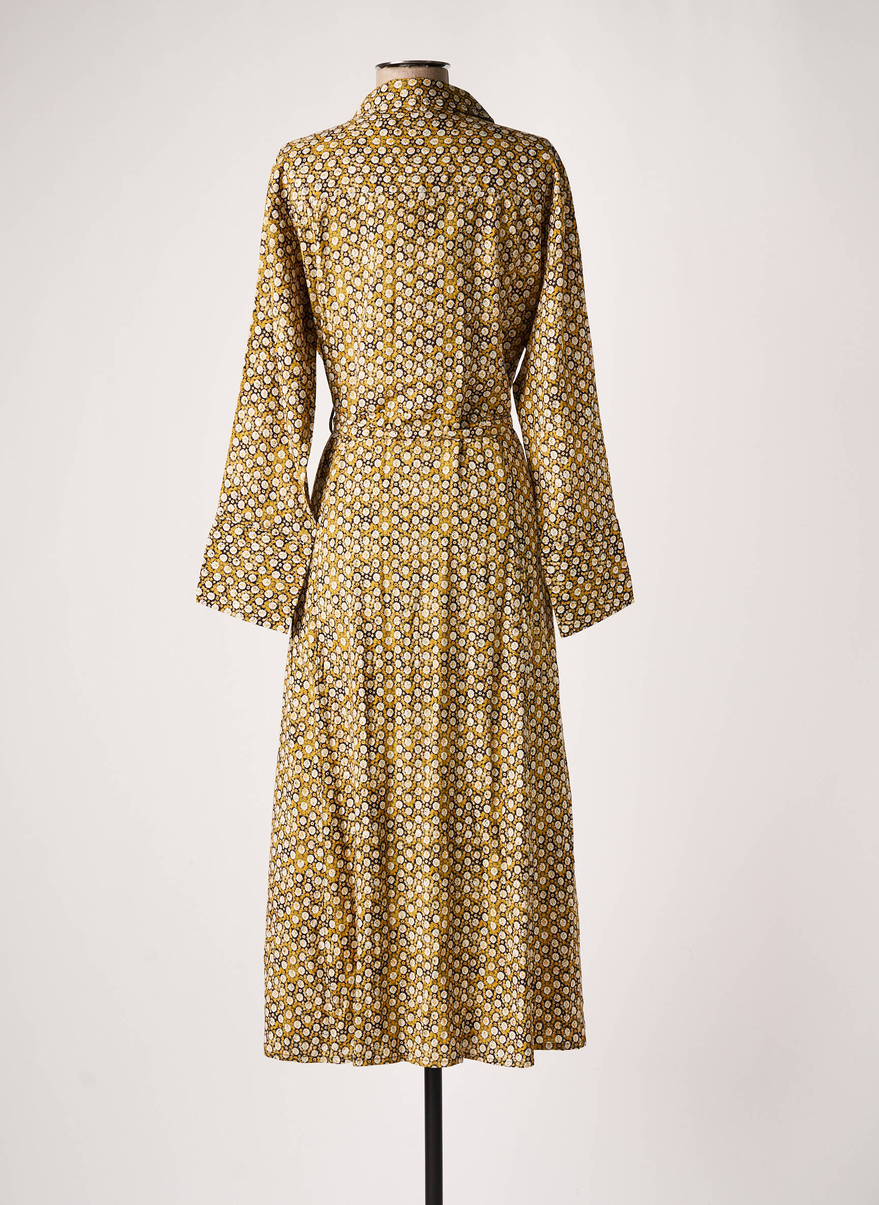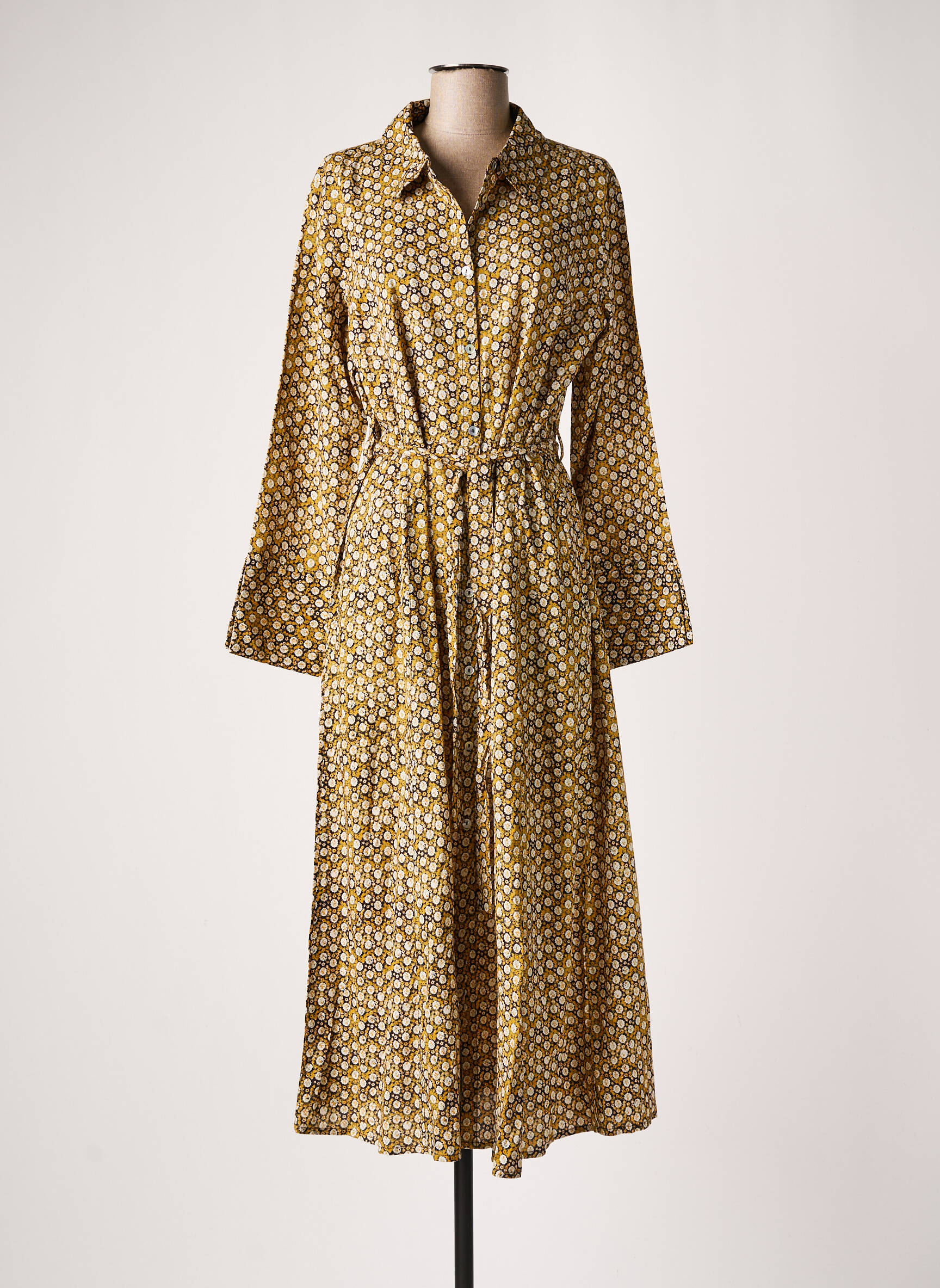 Rochie Lungă Cream Galben Mâneci Lungi