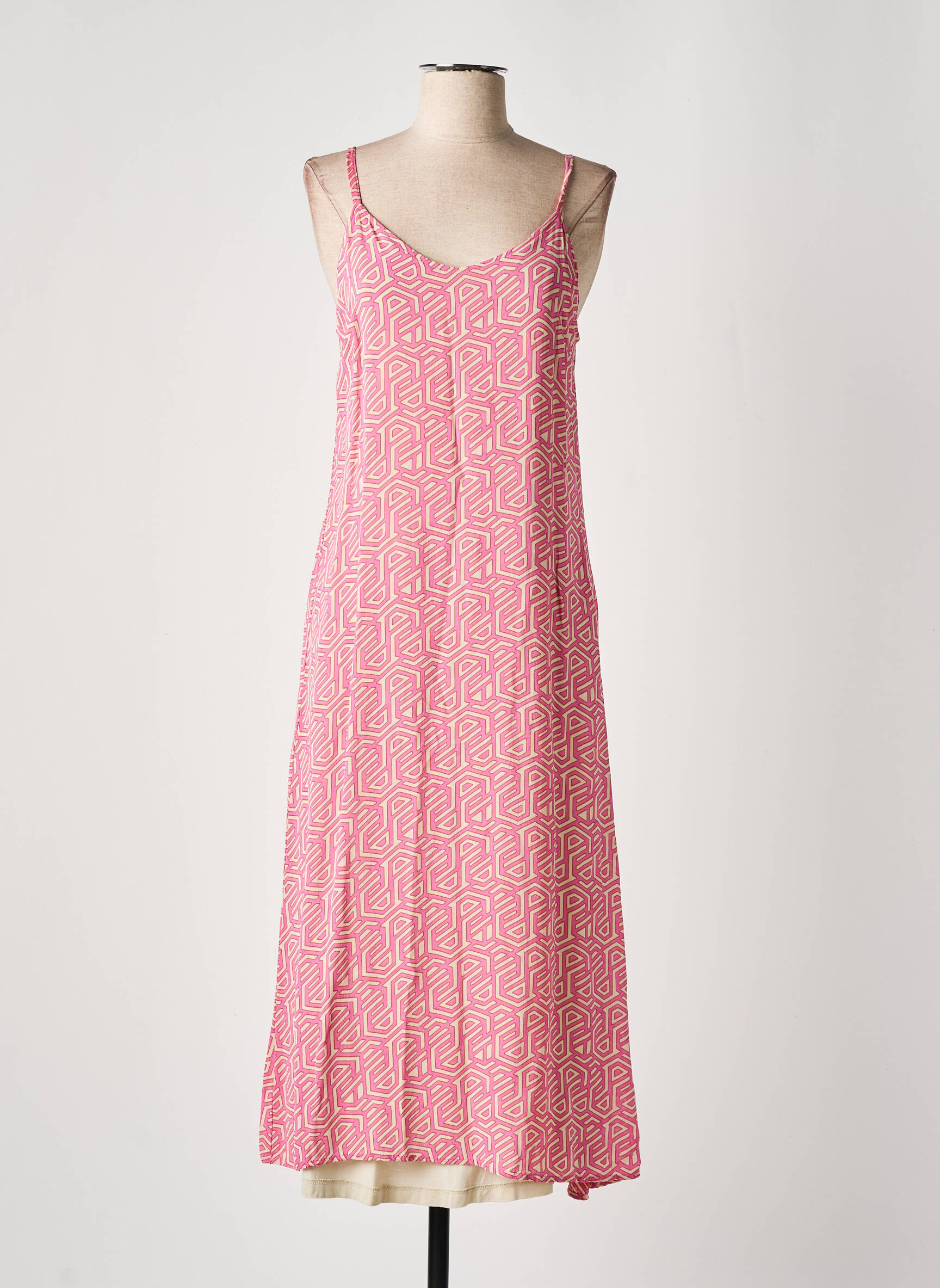 Rochie Lungă Cream Roz Bretele Subțiri
