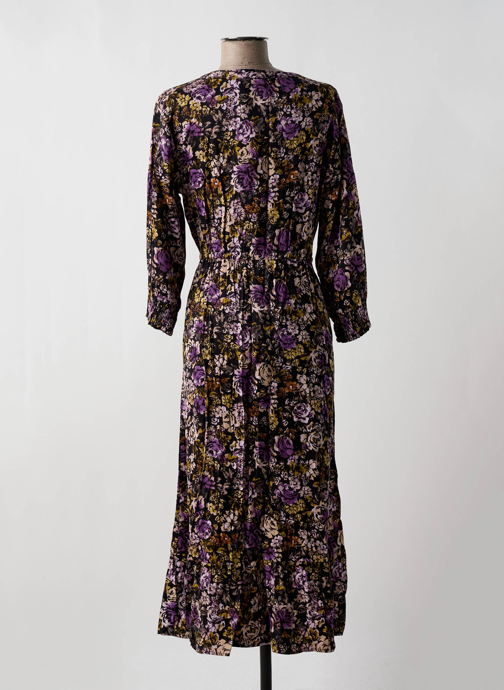 Rochie Lungă Cream Violet Mâneci Lungi