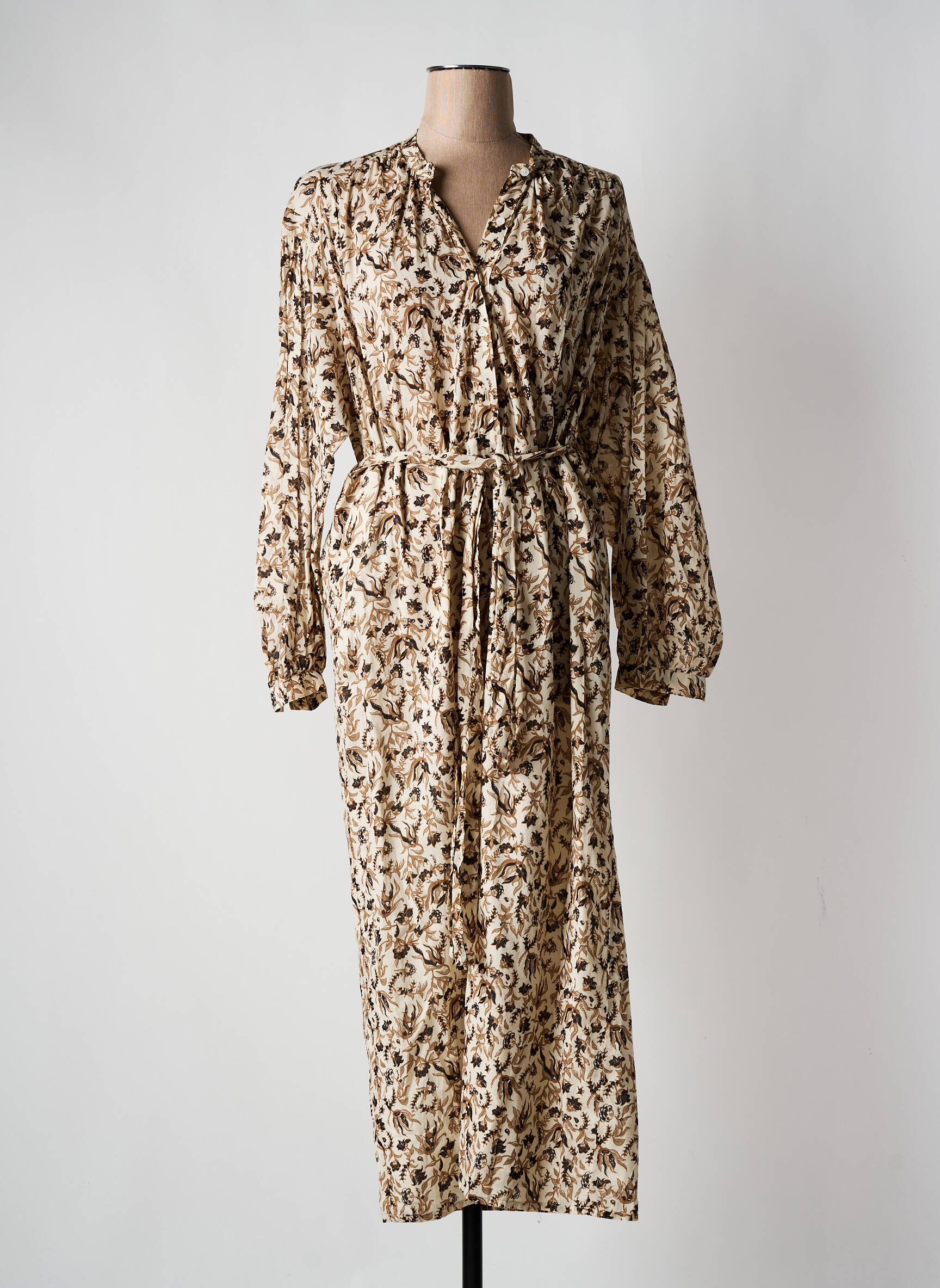 Rochie Lungă Diega Bej Mâneci Lungi