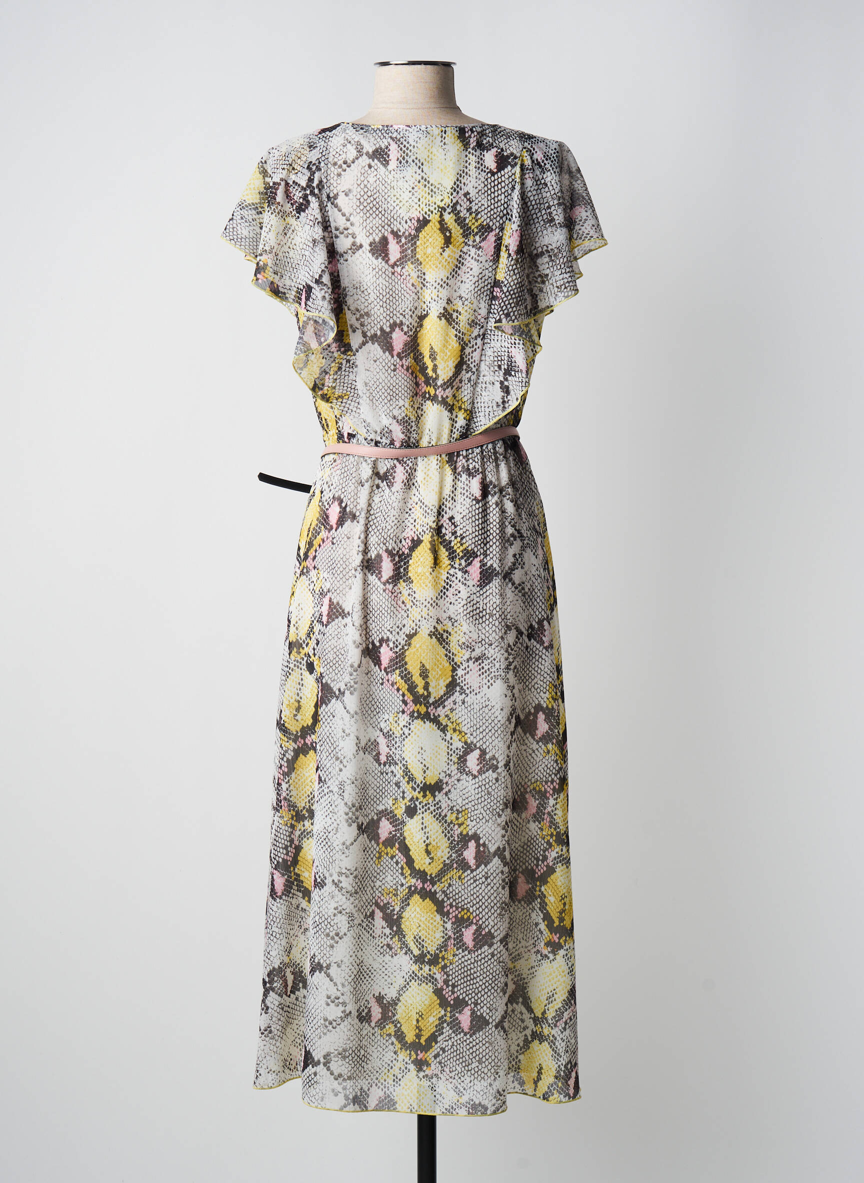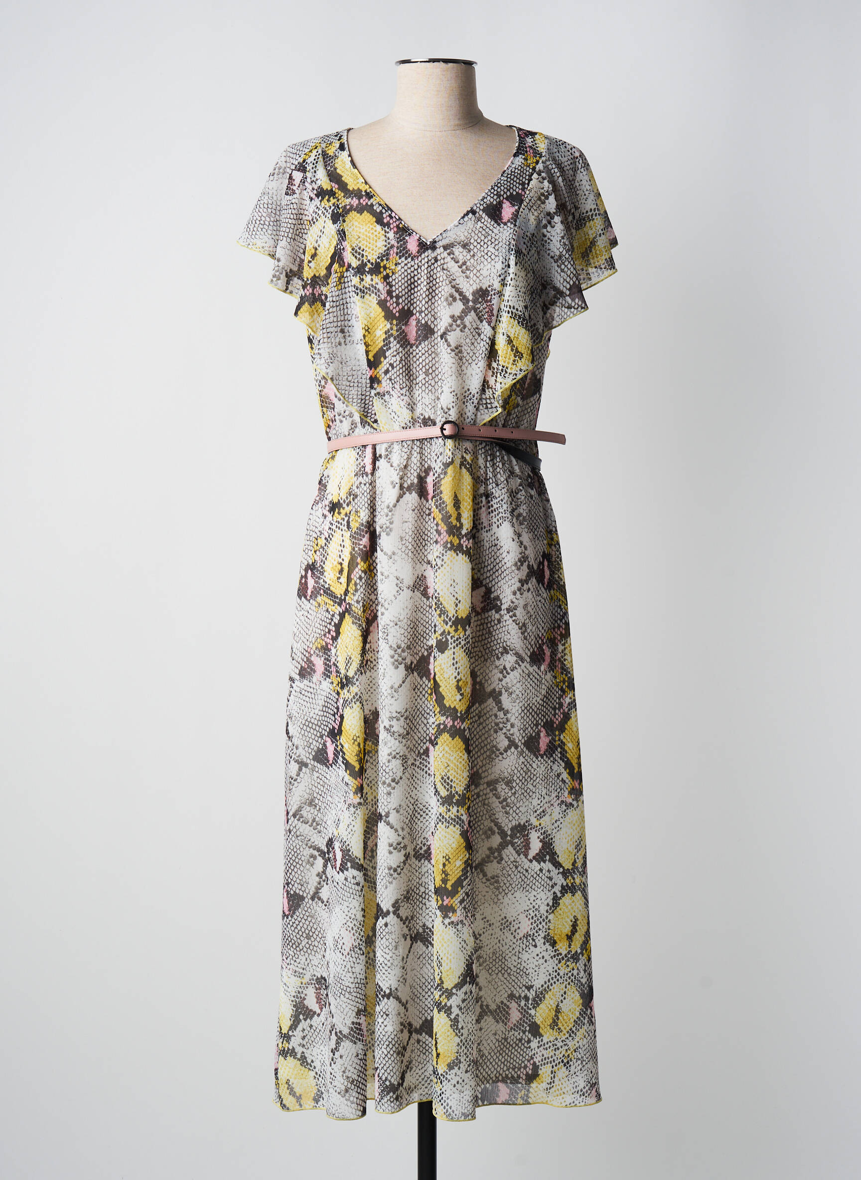 Rochie Lungă Divas Galben Mâneci Scurte
