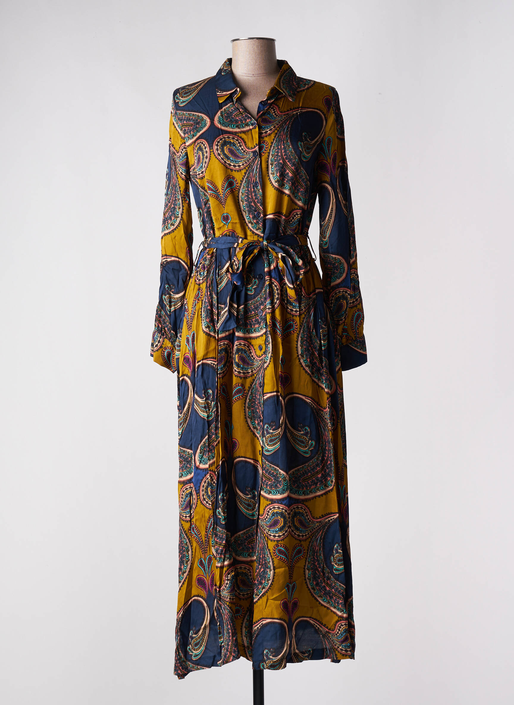 Rochie Lungă Dixie Galben Mâneci Lungi