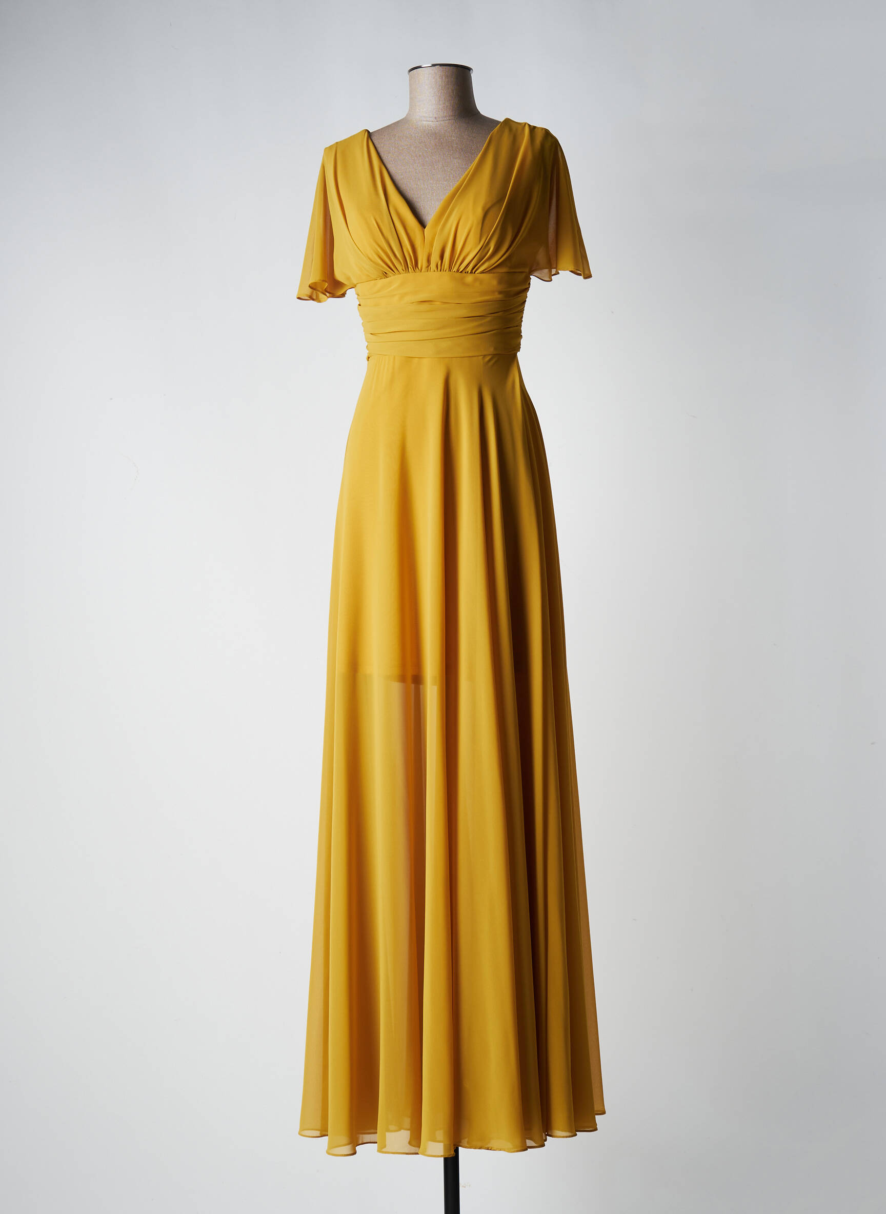 Rochie Lungă Fashion New York Galben Mâneci Scurte