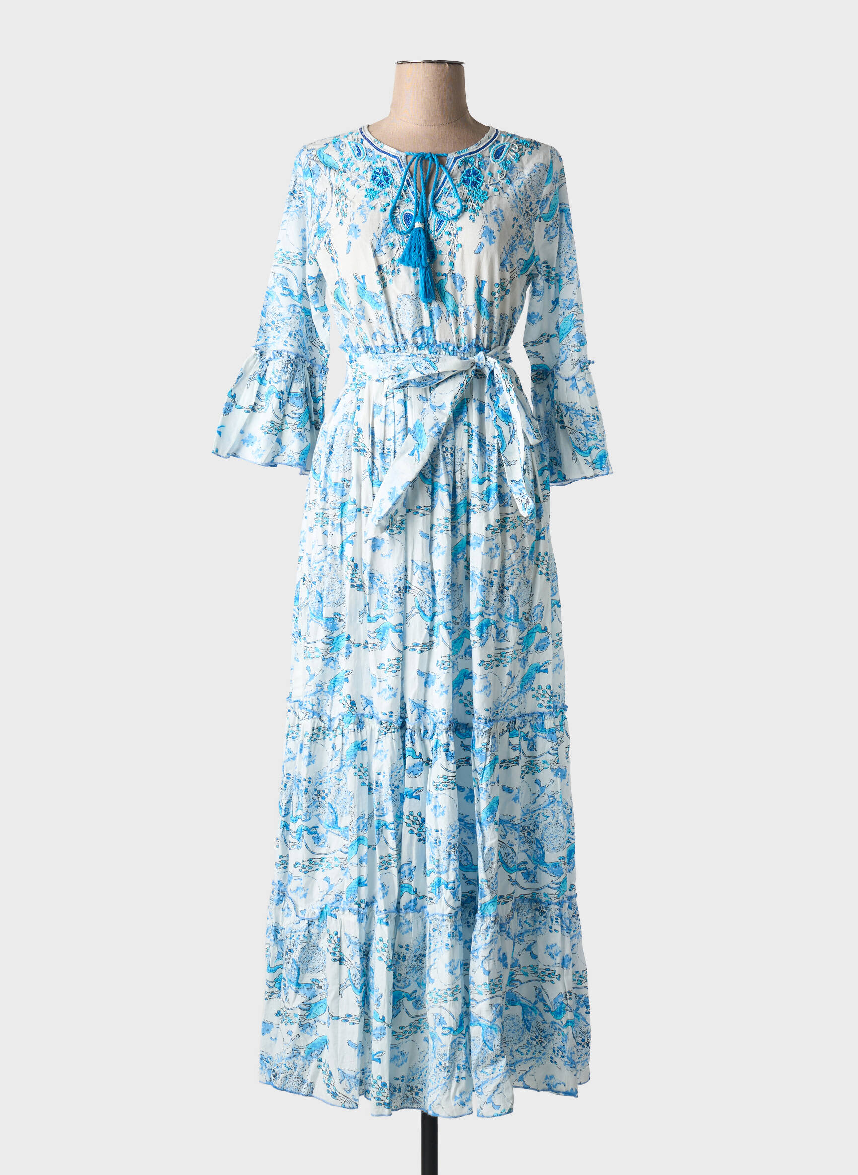 Rochie Lungă Fashion Albastru Mâneci 3/4