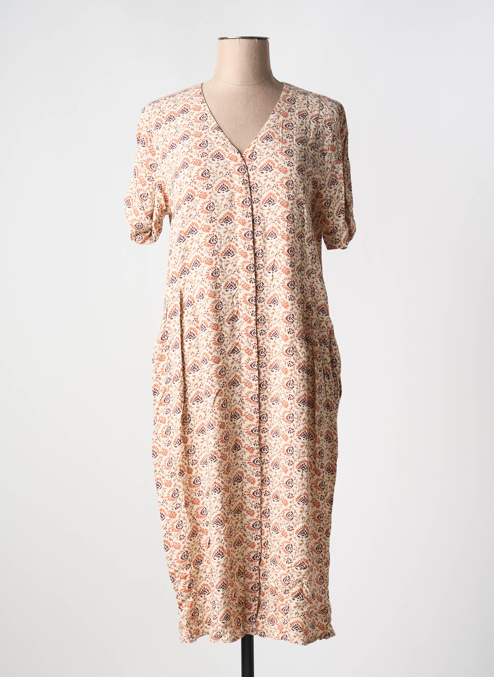 Rochie Lungă Fransa Bej Mâneci Scurte