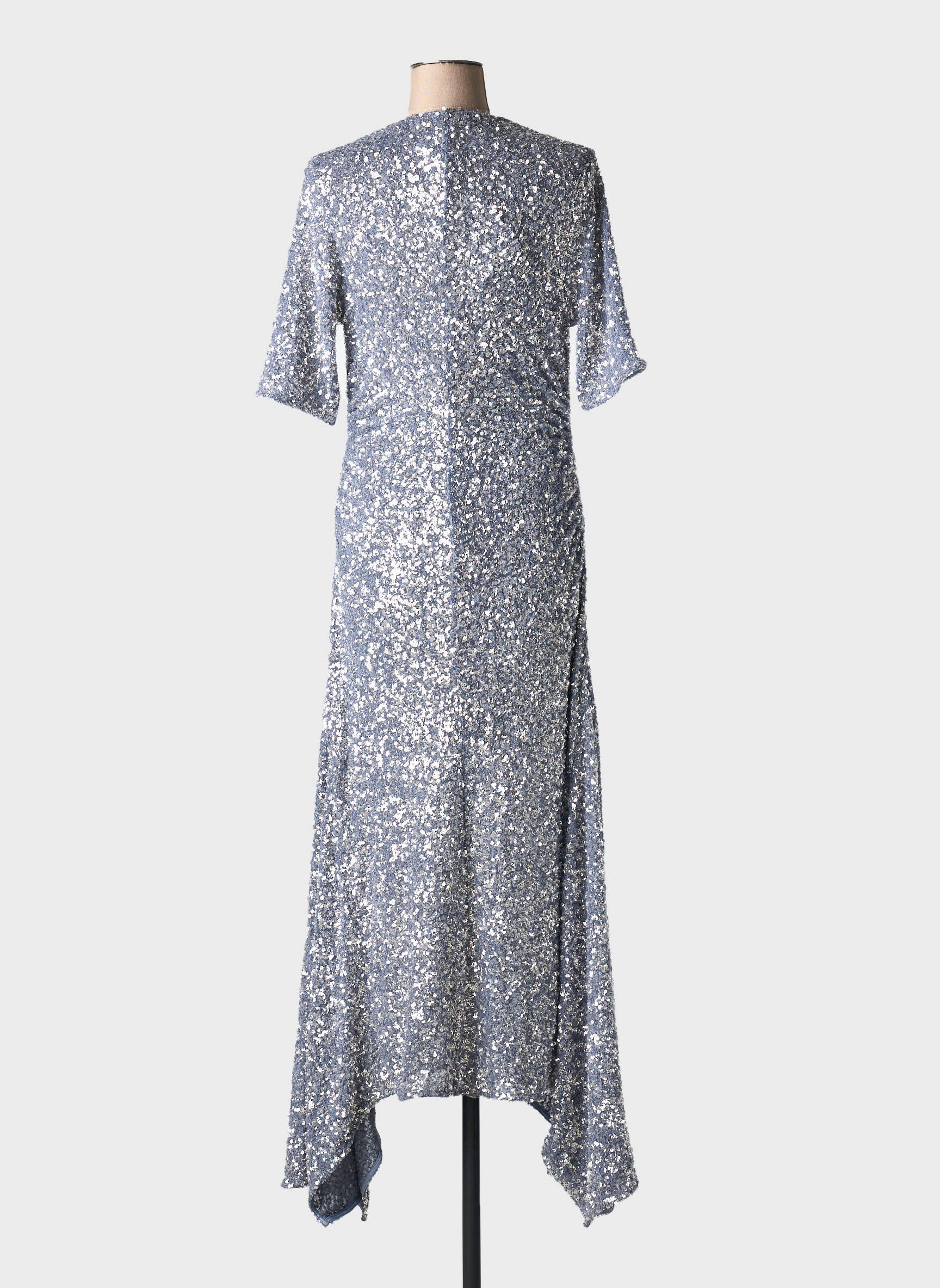 Rochie Lungă Ganni Argintiu Mâneci Scurte