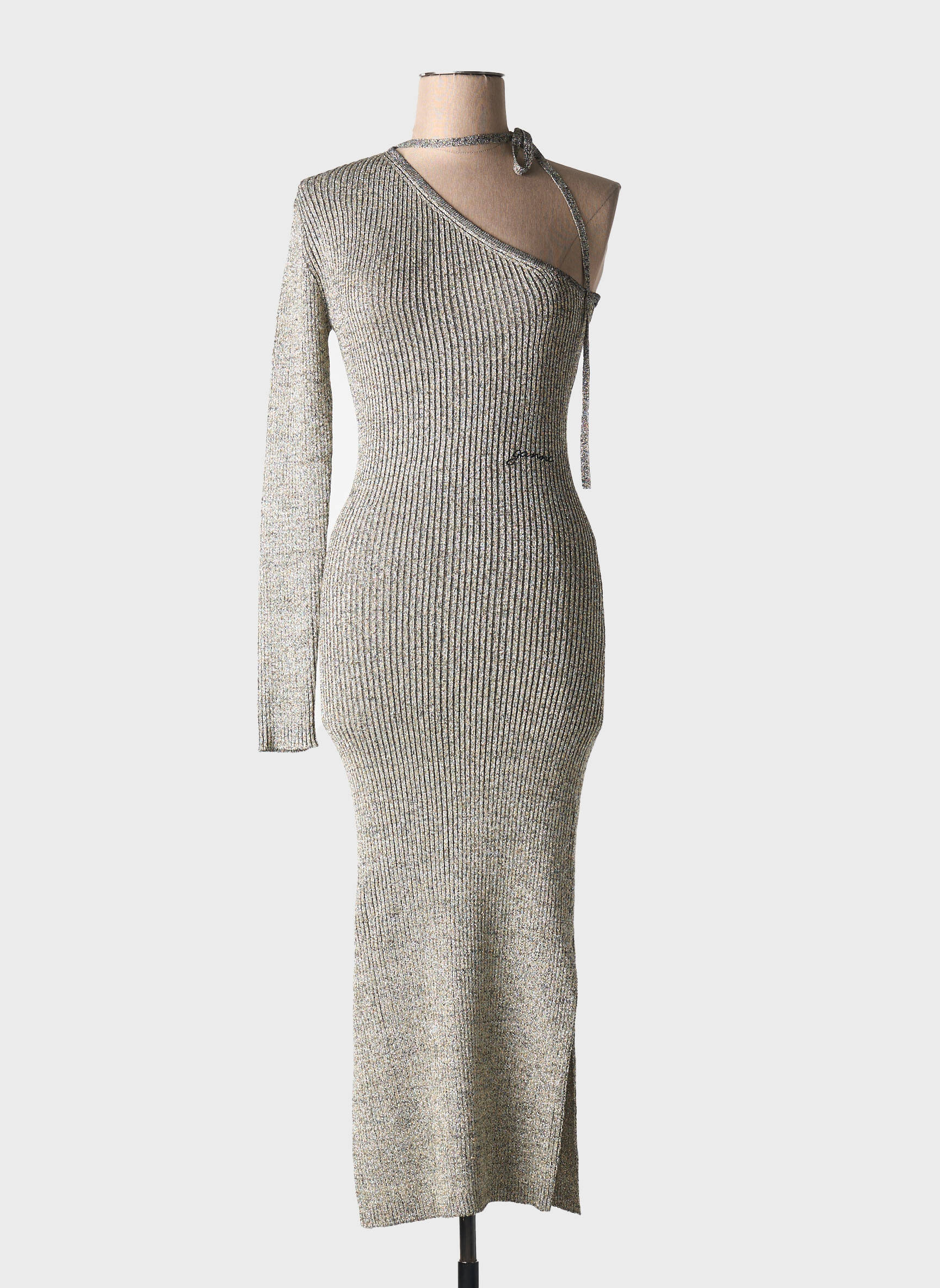 Rochie Lungă Ganni Argintiu Mâneci Lungi