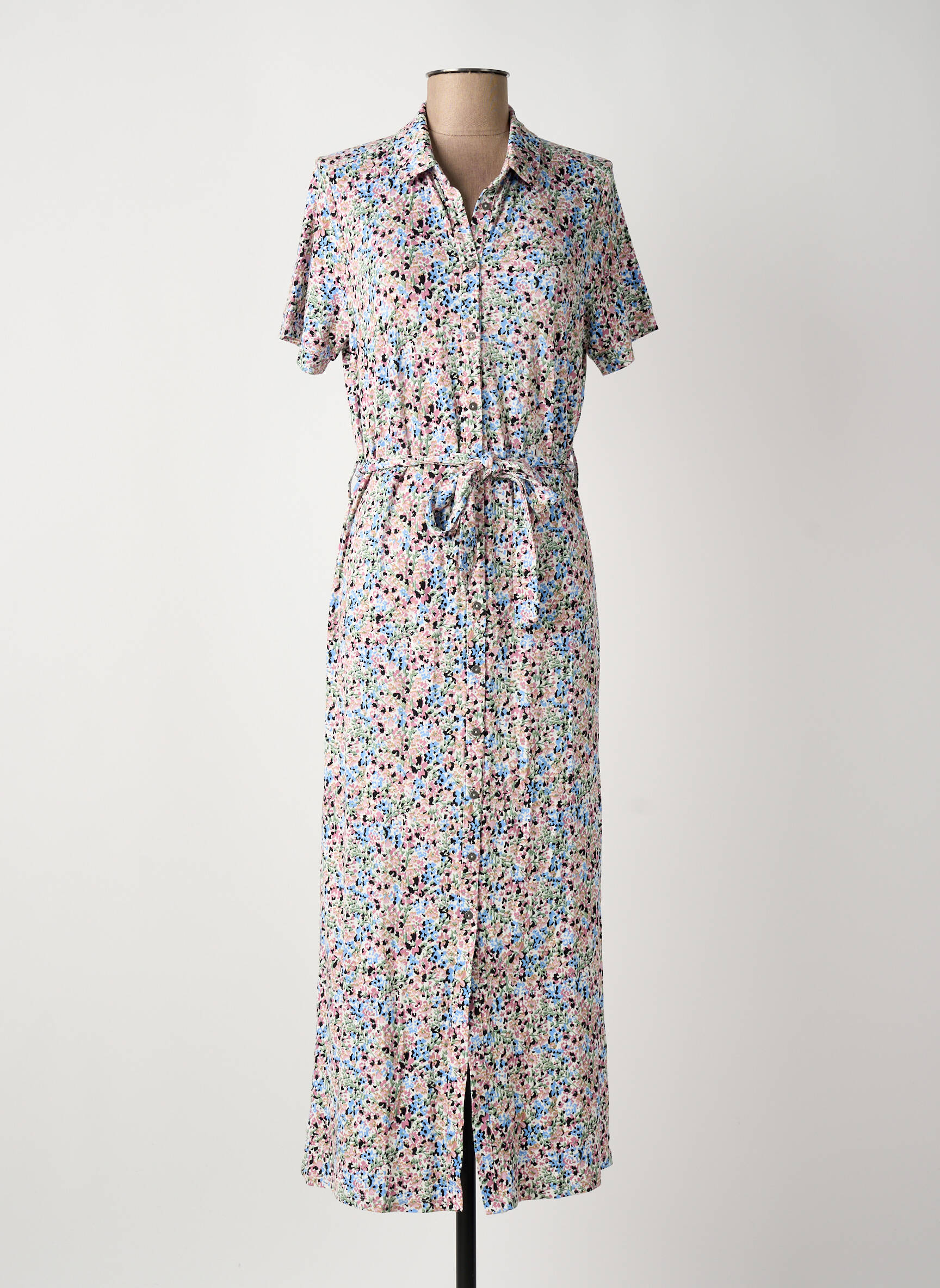 Rochie Lungă Garcia Albastru Mâneci Scurte