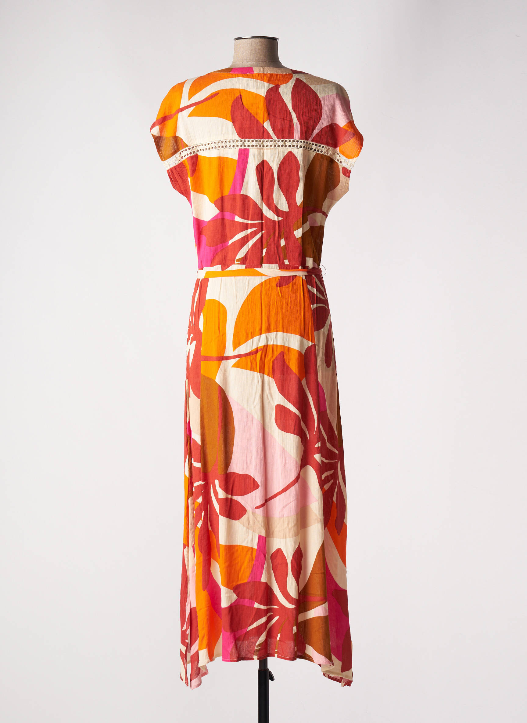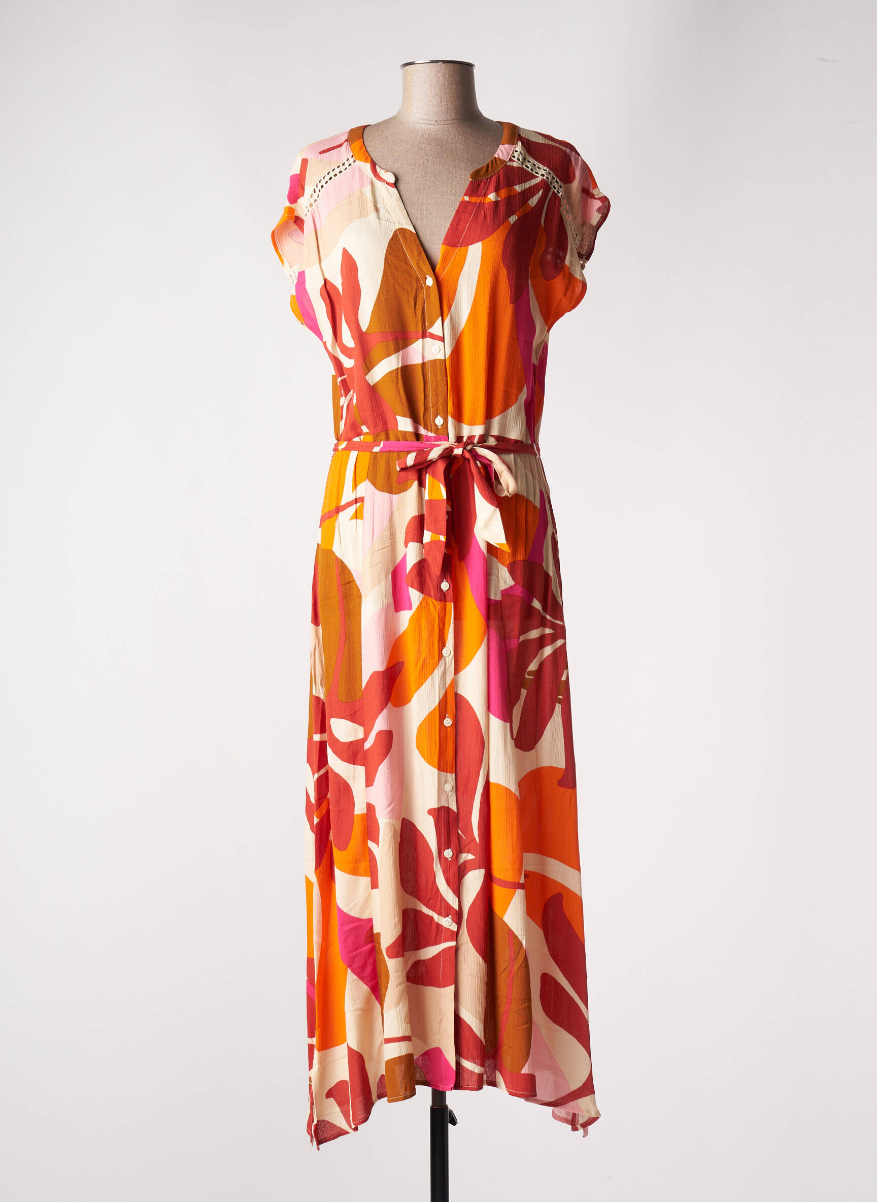 Rochie Lungă Geisha Portocaliu Mâneci Scurte