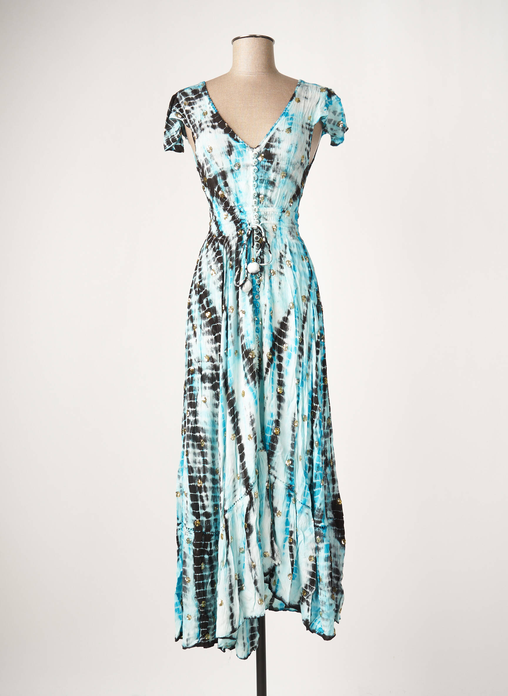 Rochie Lungă Goa Albastru Mâneci Scurte