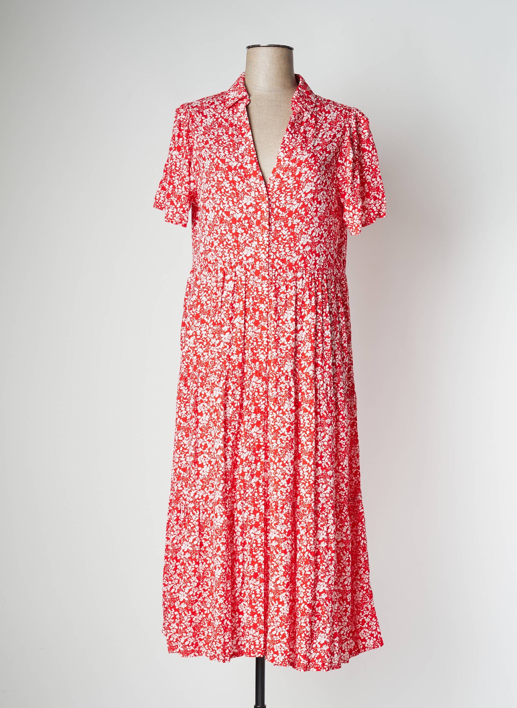 Rochie Lungă Goa Roșu Mâneci Scurte