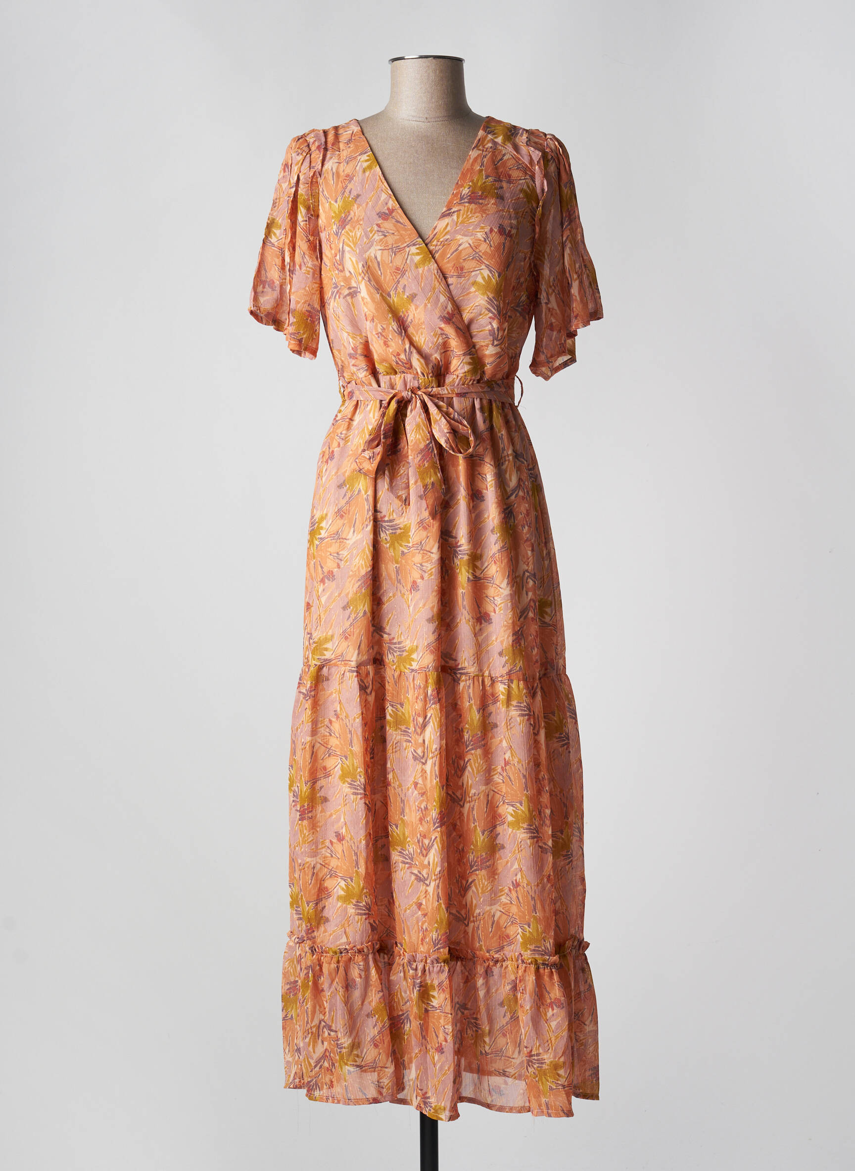 Rochie Lungă Grace & Mila Portocaliu Mâneci Scurte