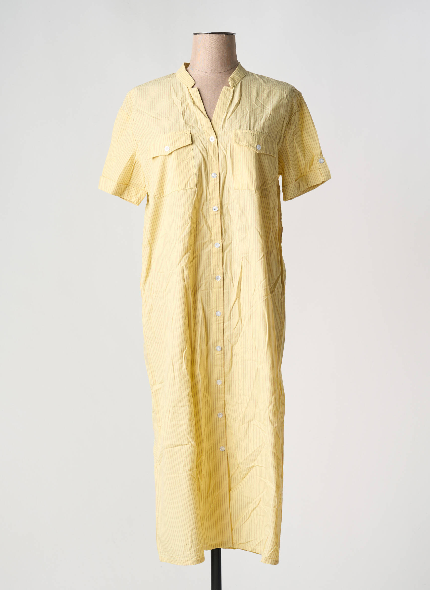 Rochie Lungă Ichi Galben Mâneci Scurte