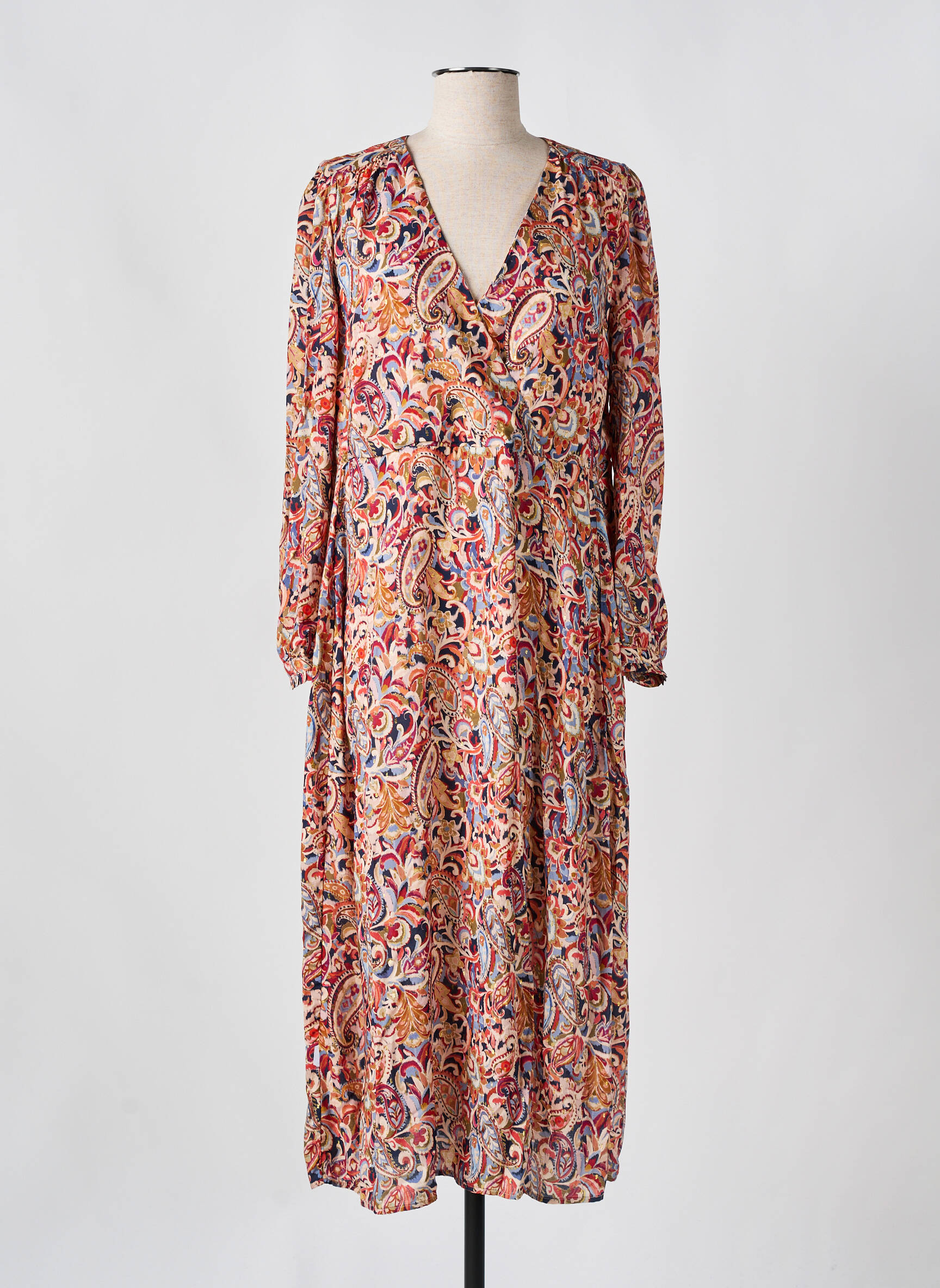 Rochie Lungă Julie Guerlande Portocaliu Mâneci Lungi