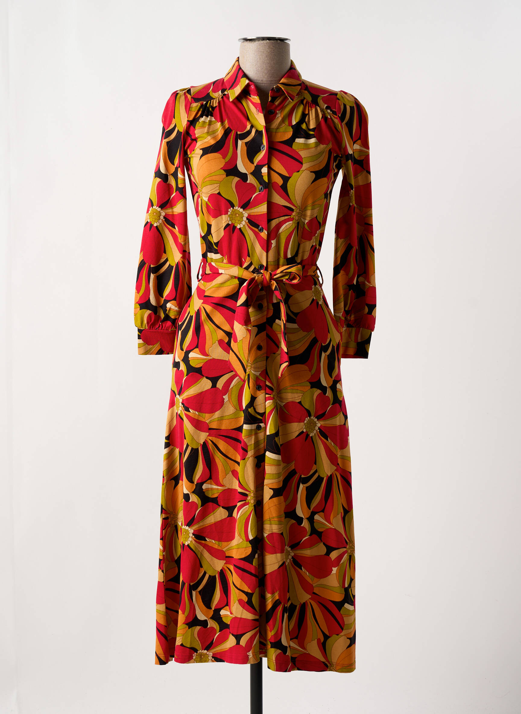 Rochie Lungă King Louie Roșu Mâneci Lungi