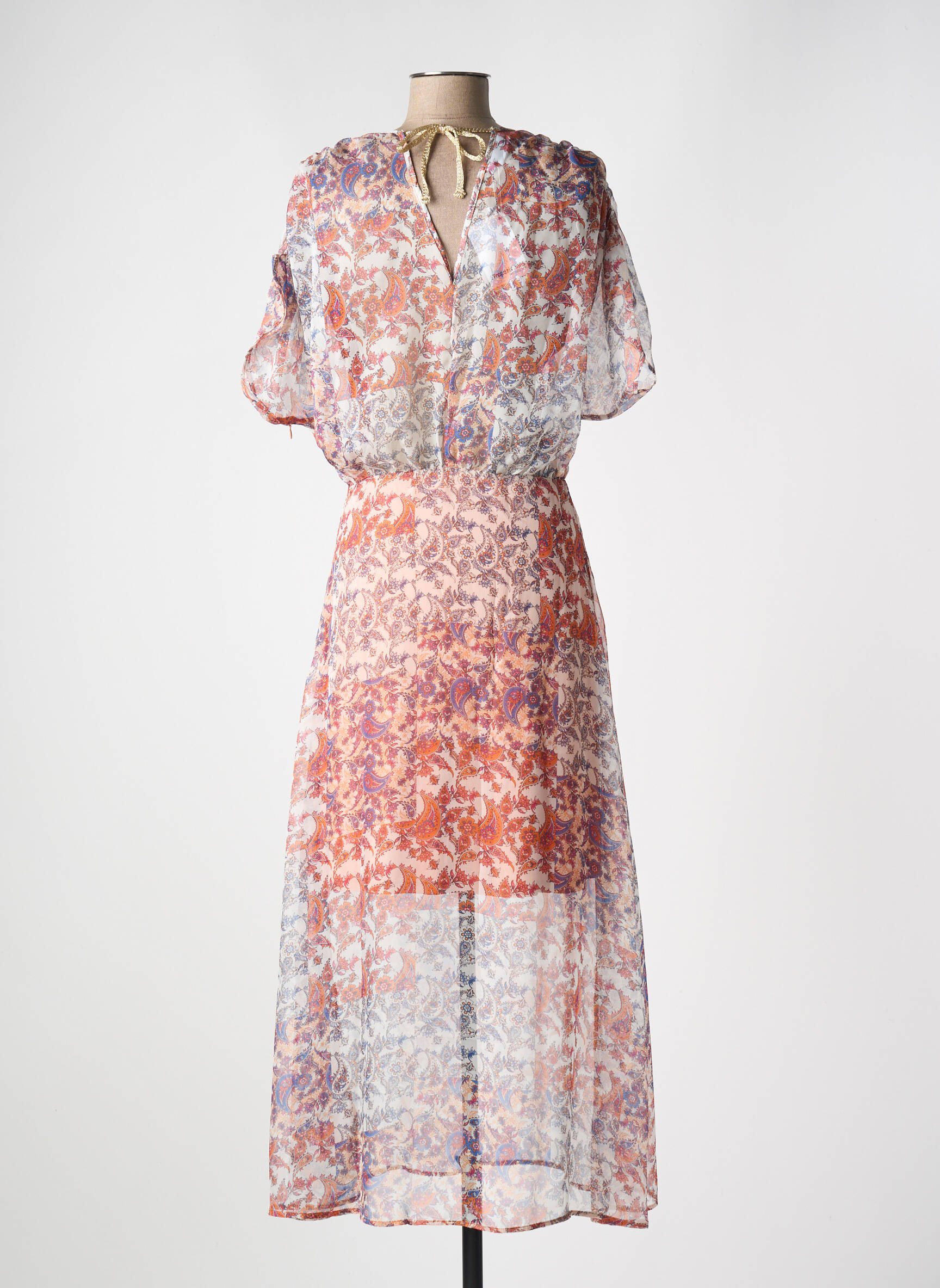 Rochie Lungă Les Tropeziennes Par M.belarbi Portocaliu Mâneci Scurte