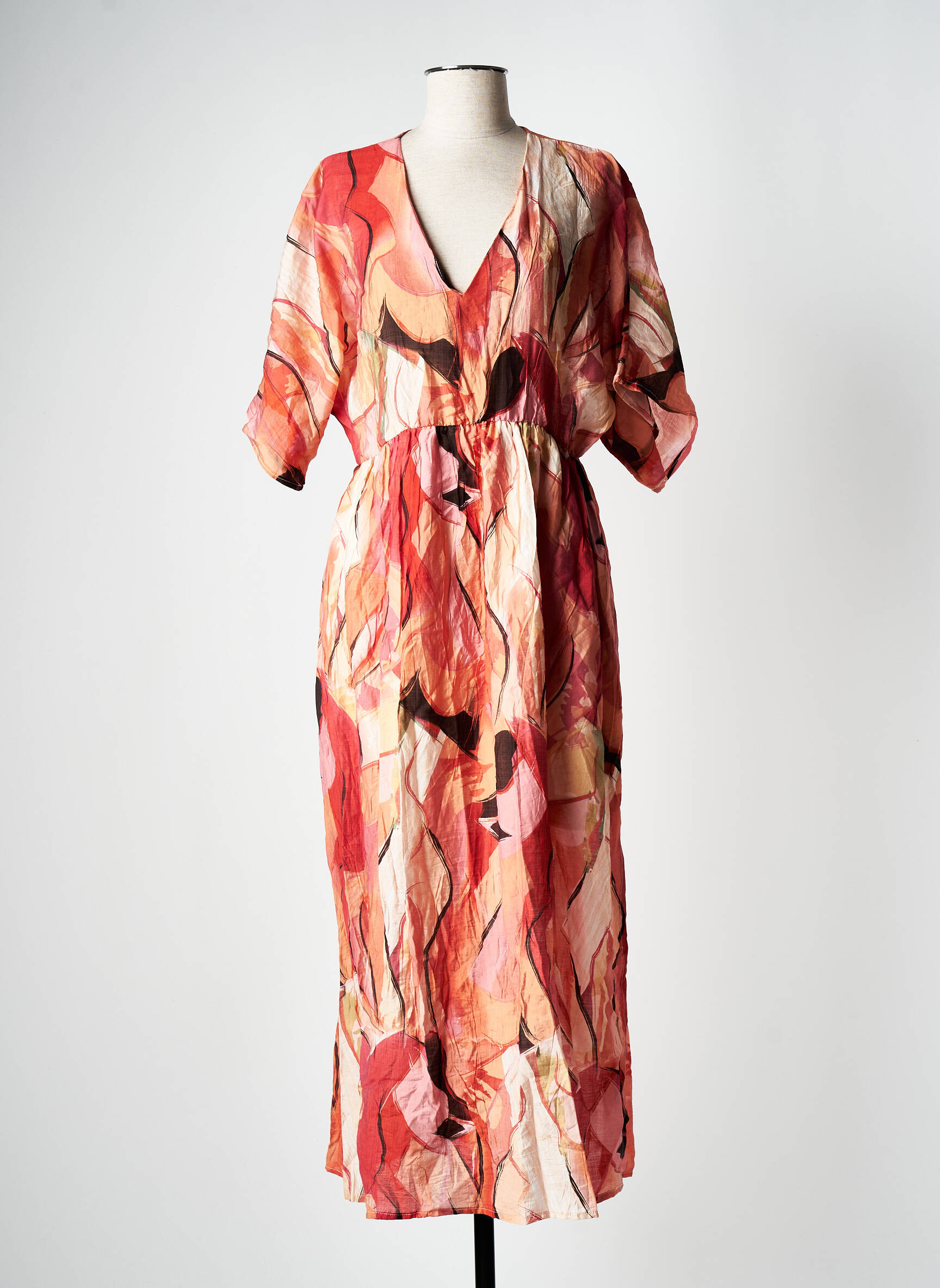 Rochie Lungă Lilie Plus Portocaliu Mâneci Scurte