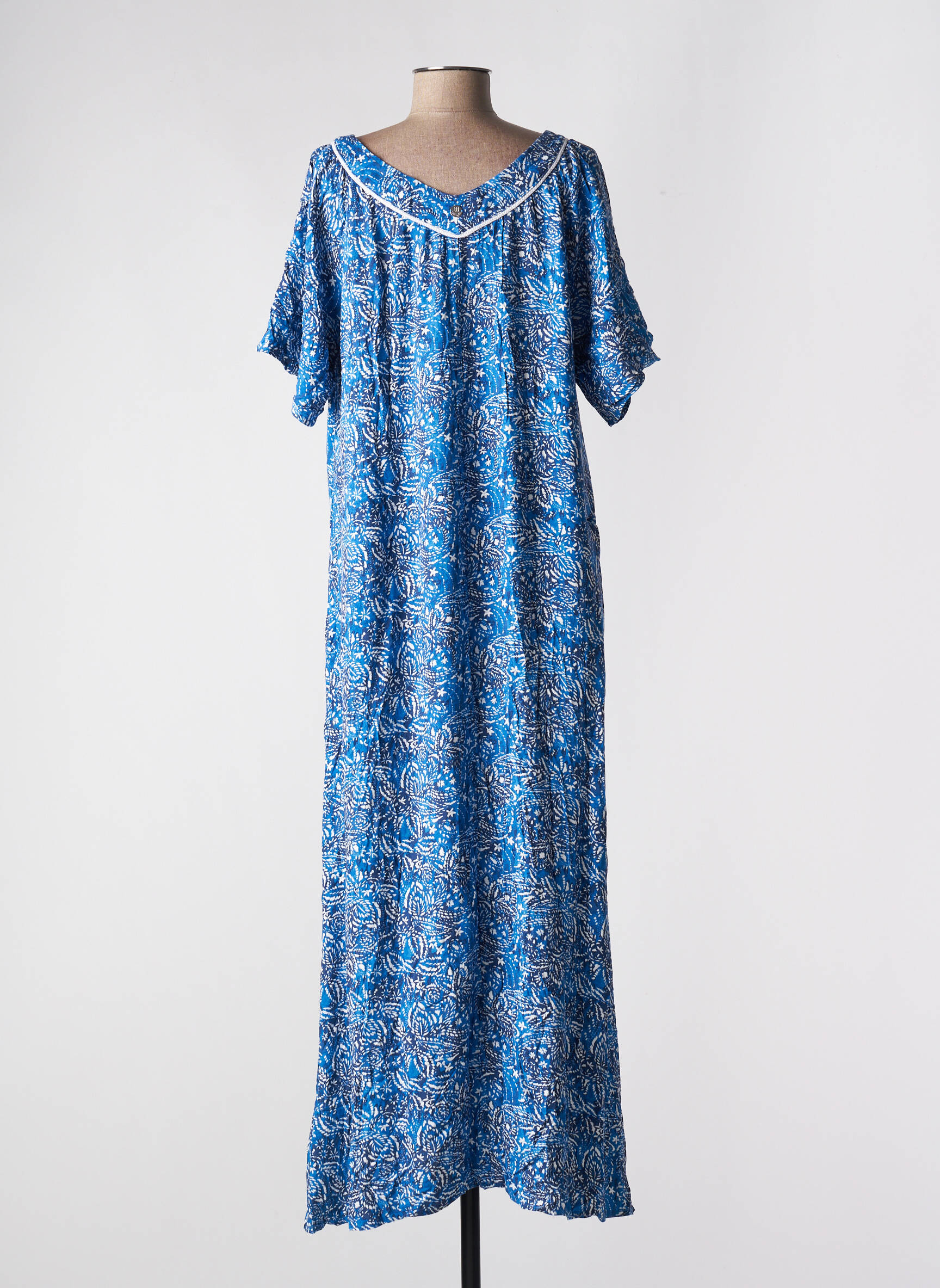 Rochie Lungă Lola Espeleta Albastru Mâneci Scurte